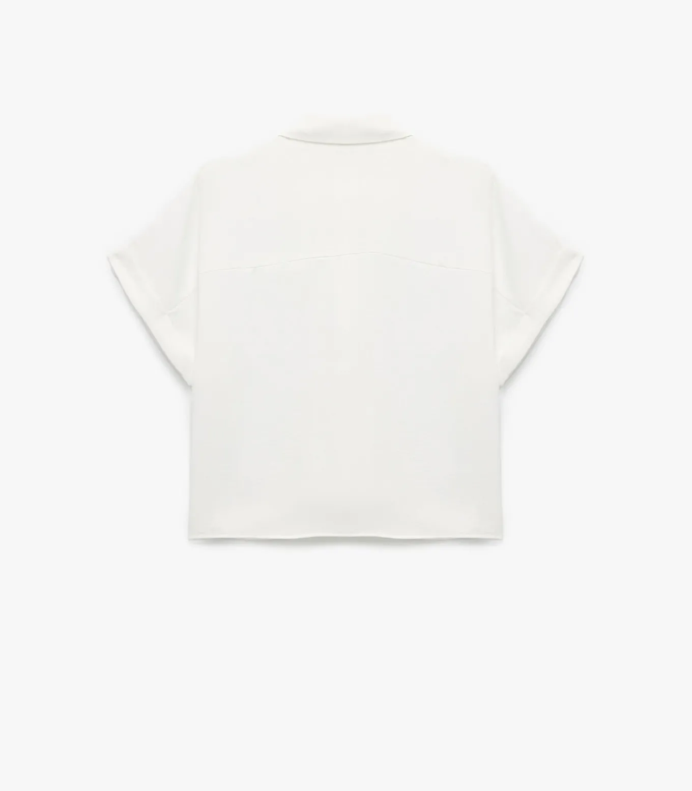 Aerobin fabric short sleeve classic collar satin oversized shirt.