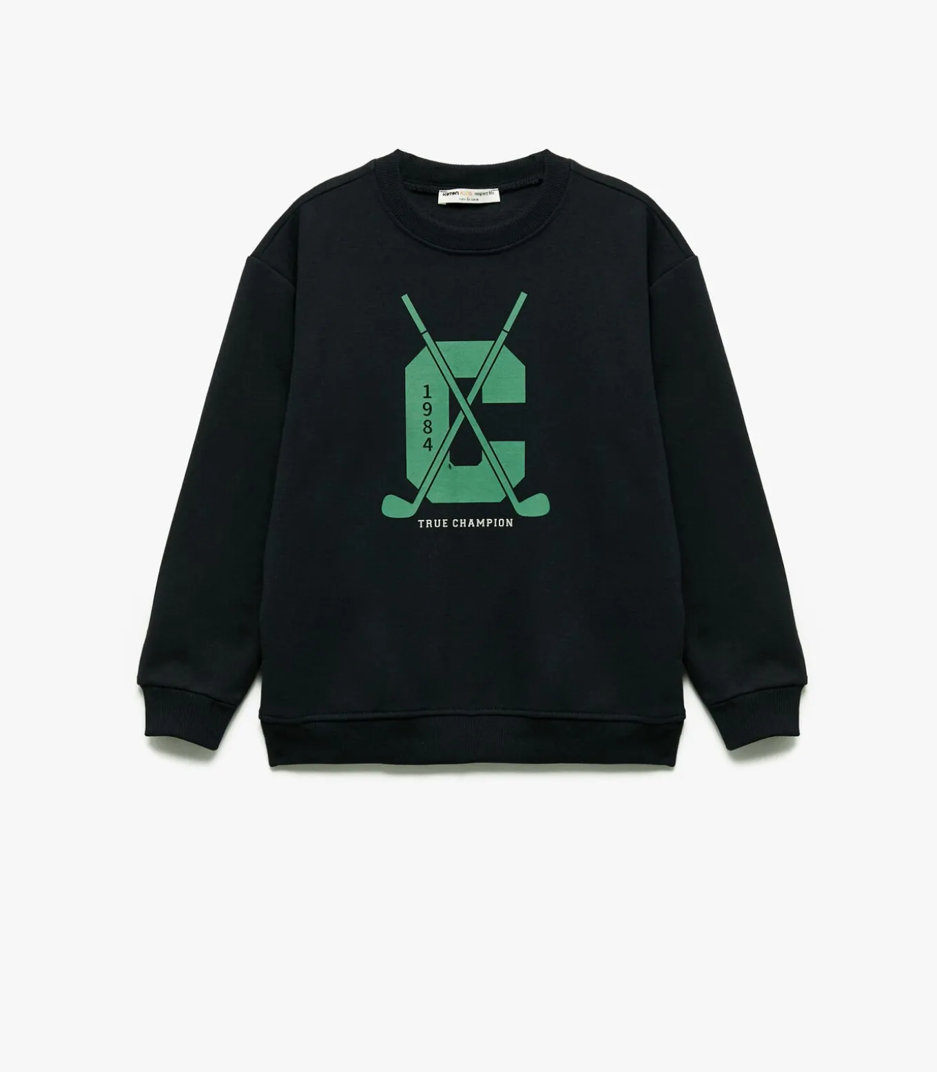 Koton Long sleeve crew neck printed soft interior sweatshirt.