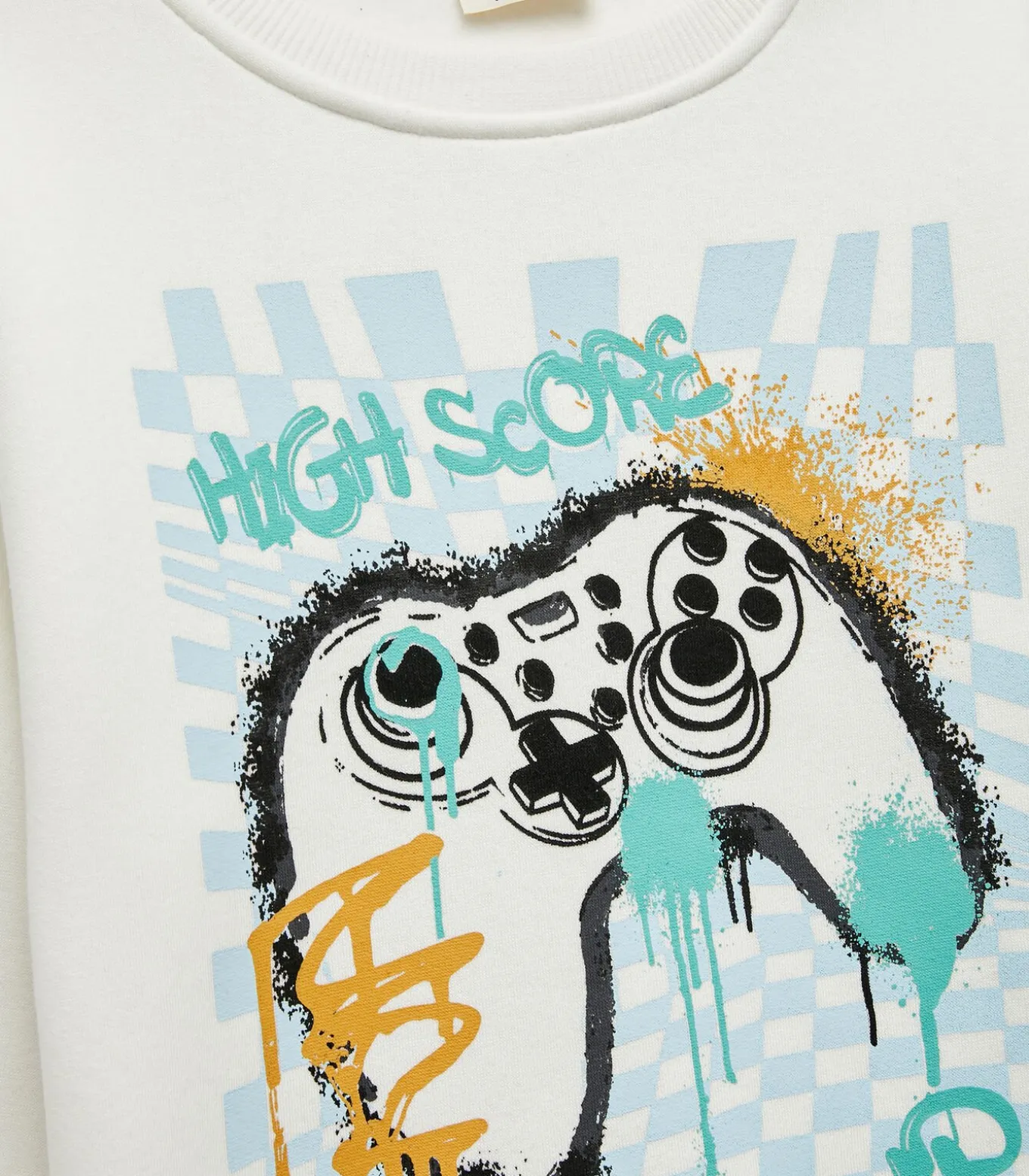 Koton Printed long sleeve crew neck soft interior sweatshirt.