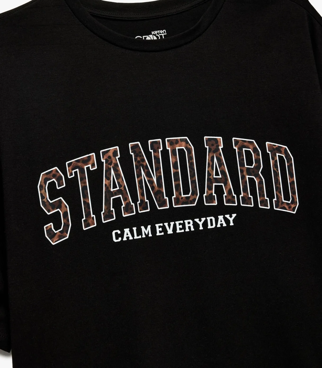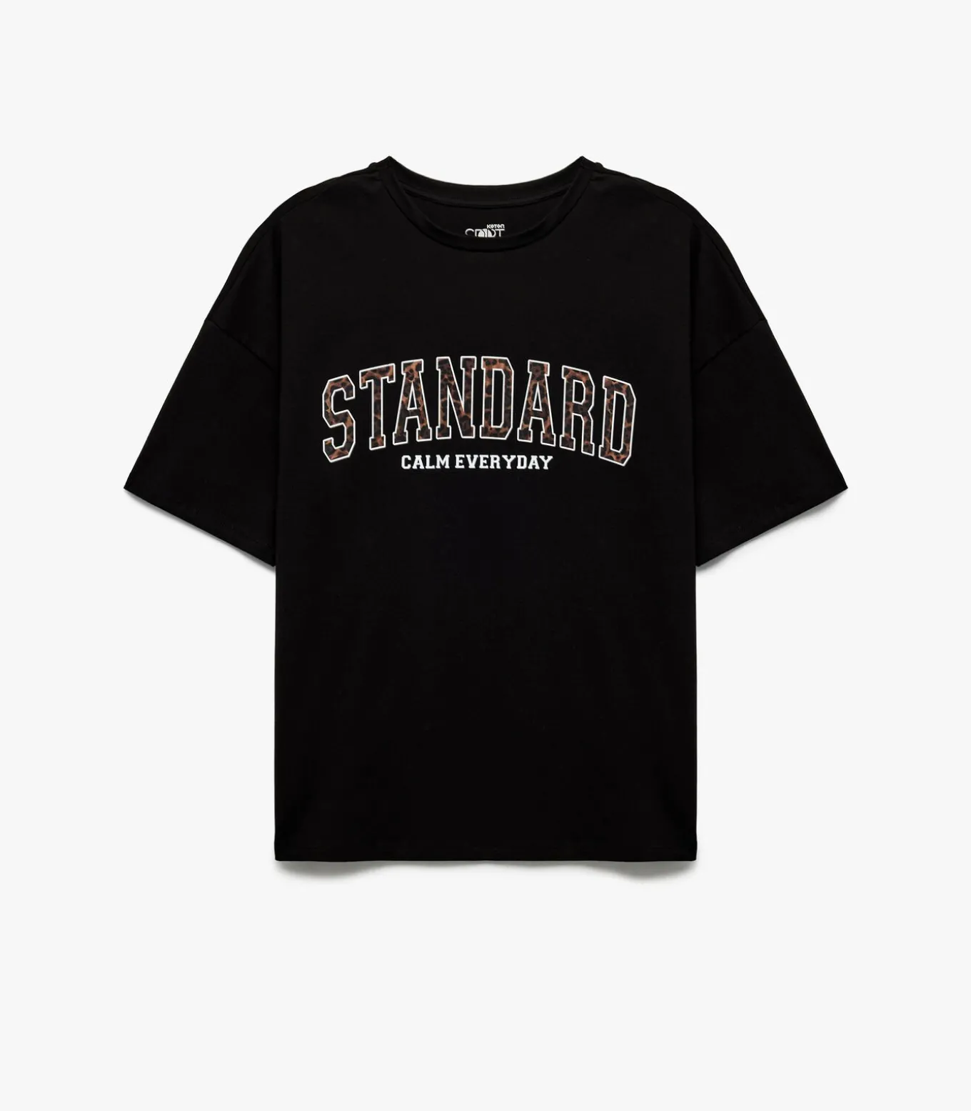 Koton Crew neck half sleeve printed oversized sports t shirt.