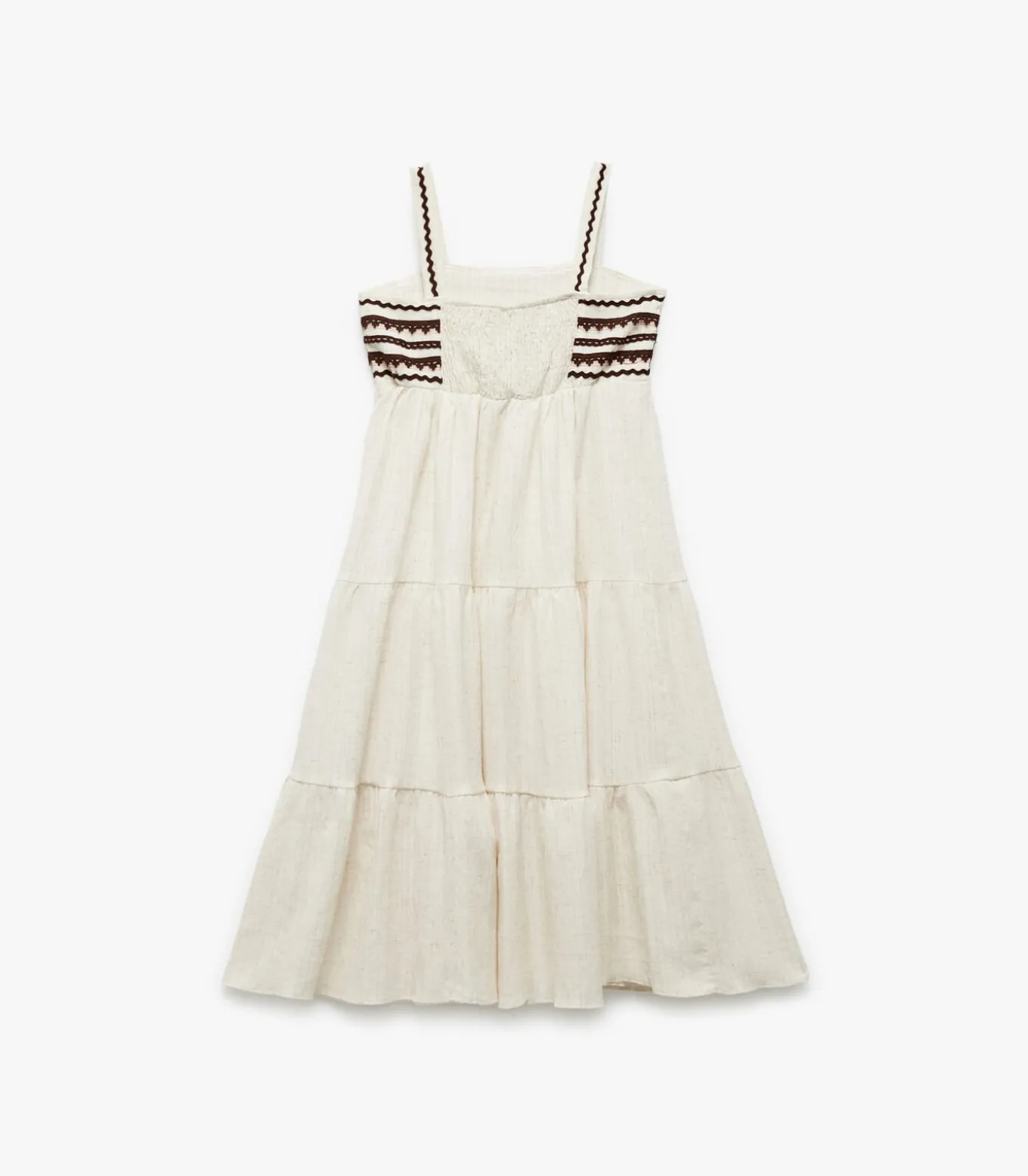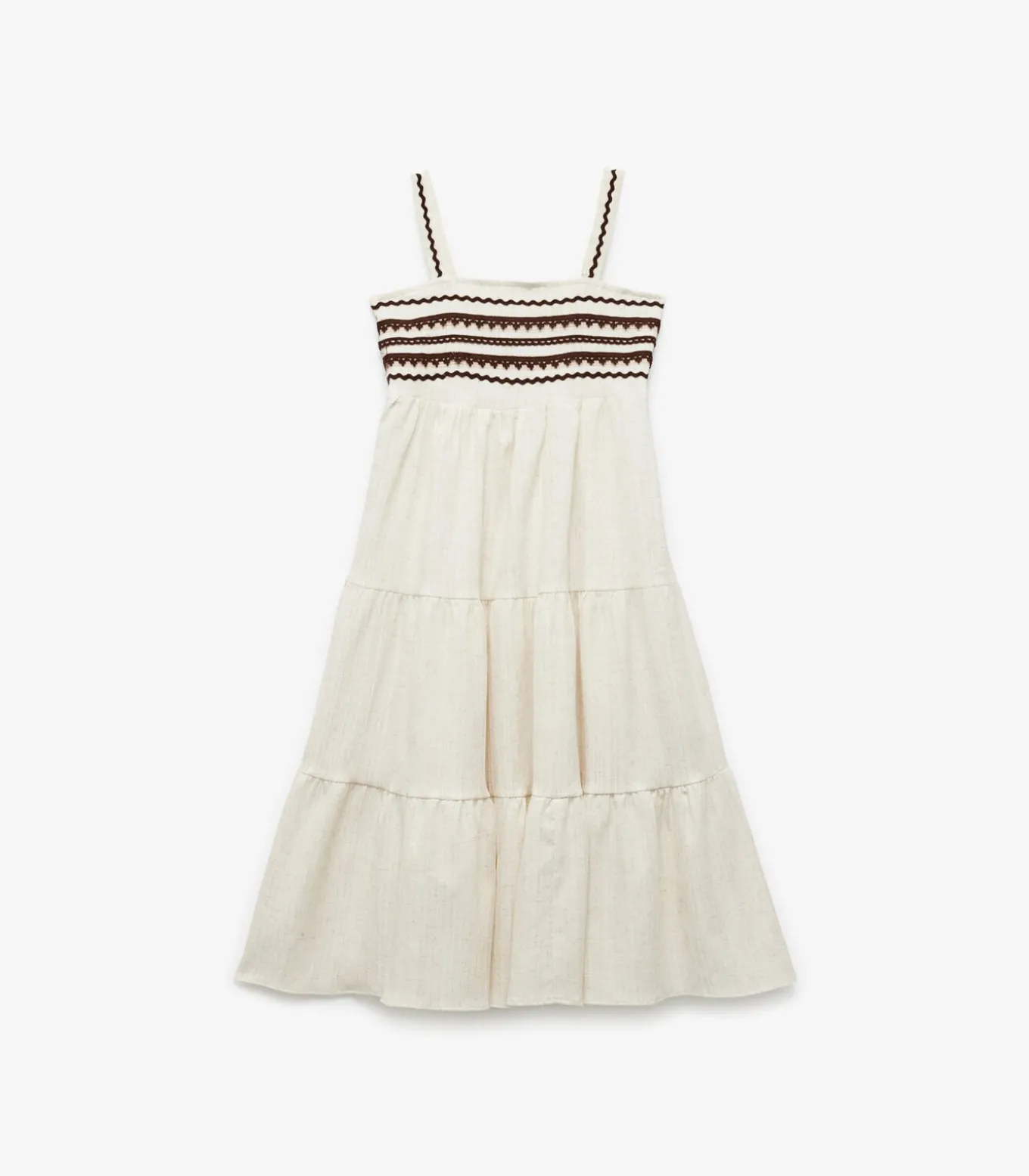 Viscose linen blend loose fit layered square neck strappy maxi dress.