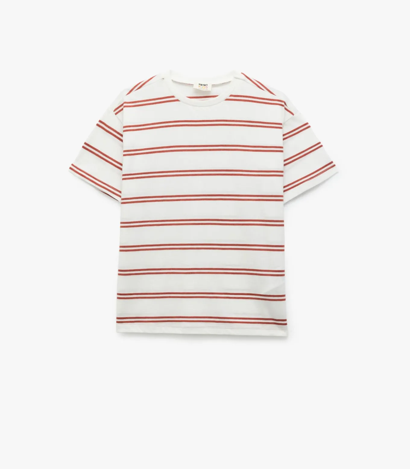 Short sleeve crew neck cotton striped oversized t–shirt.