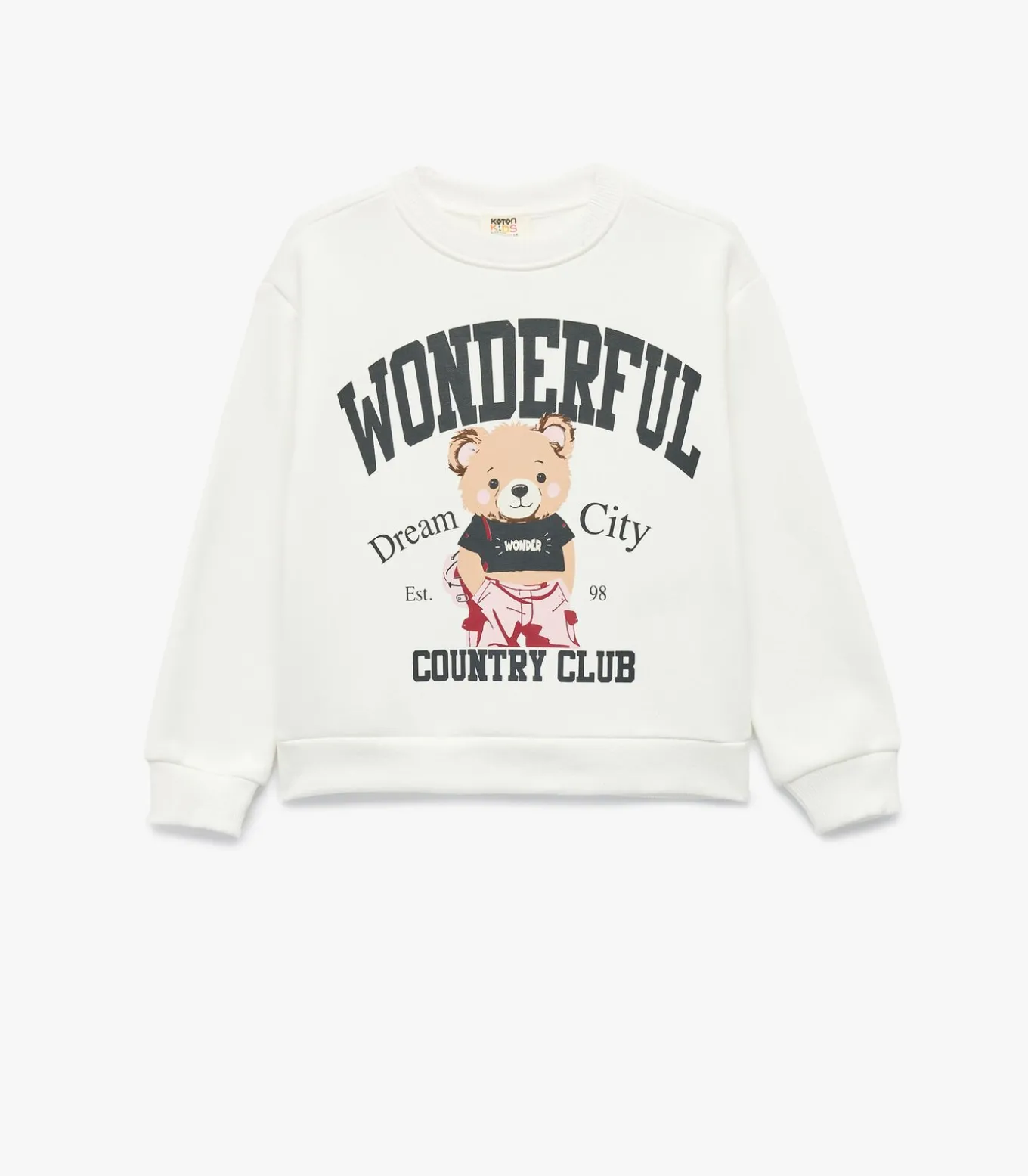Koton Long sleeve crew neck soft interior teddy bear printed sweatshirt.