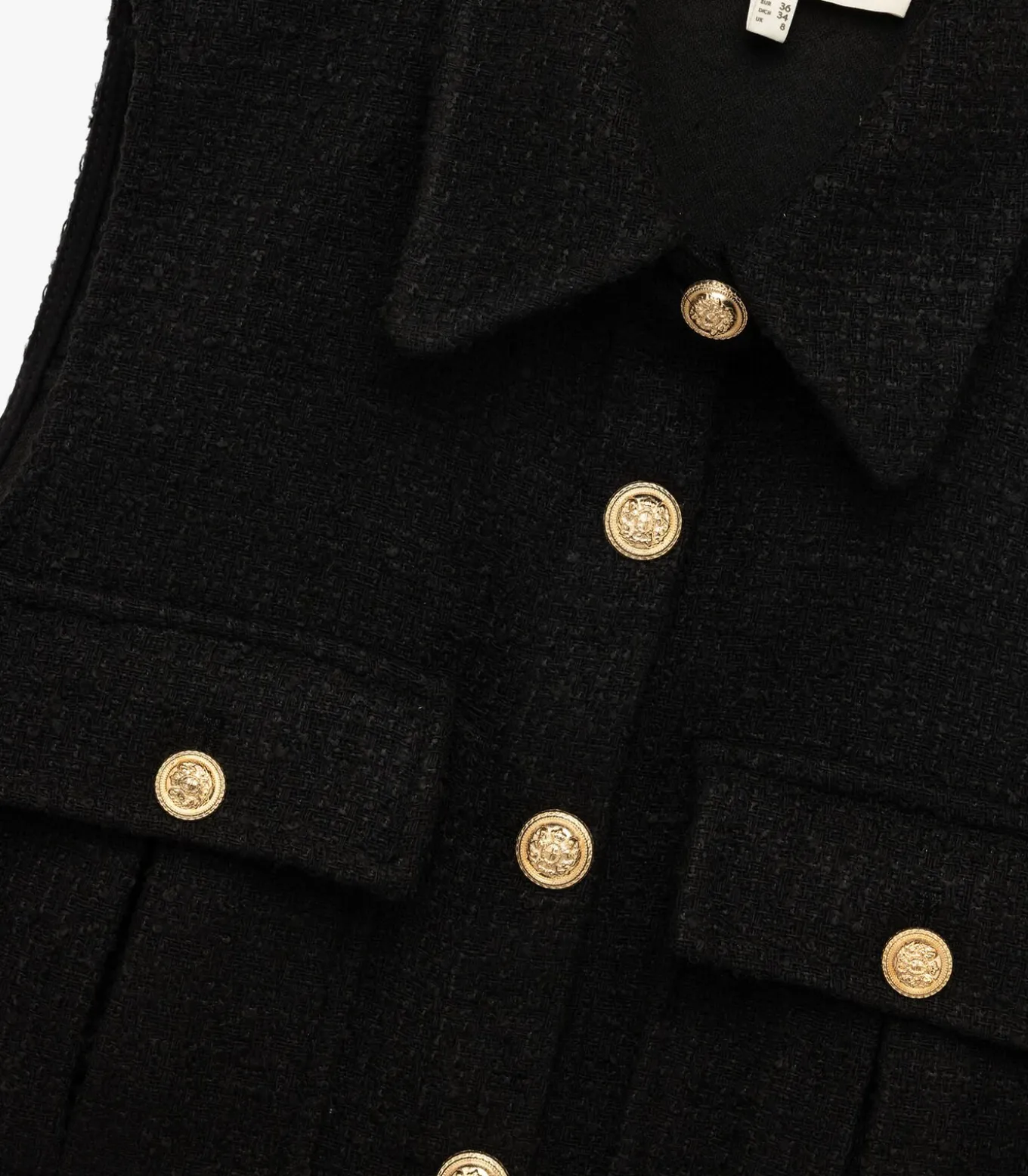 Koton Buttoned pocket detail sleeveless shirt collar tweed crop vest.