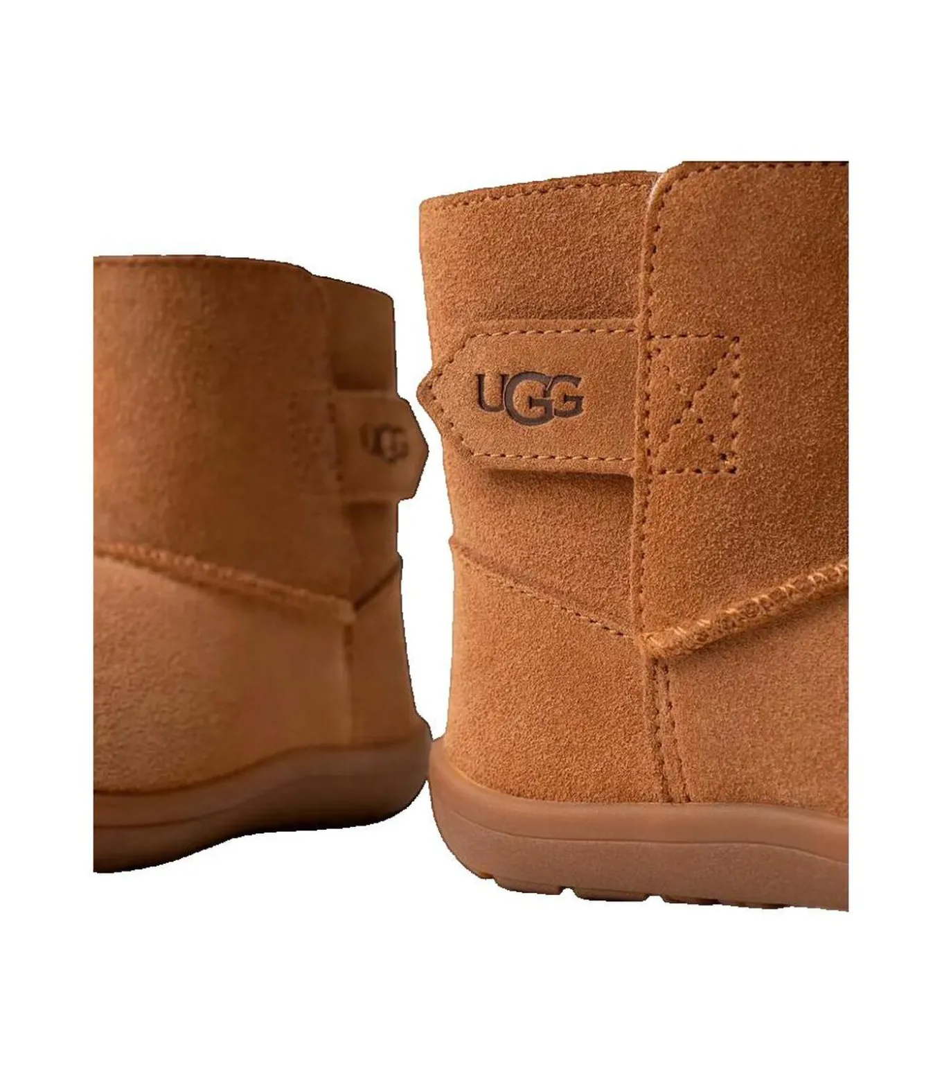 De Keelan II Grand laars van UGG is perfect voor het dagelijks gebruik van uw kind. Hij heeft een zachte UGGplush™ voering en een klittenbandsluiting die het aan– en uittrekken vergemakkelijkt. De SunshineFlex™ buitenzool biedt optimale grip en bescherming voor de tenen, ideaal om uw kind te begeleiden tijdens het groeien en spelen. Gemaakt van bruin leer, combineert deze laars comfort en duurzaamheid.
