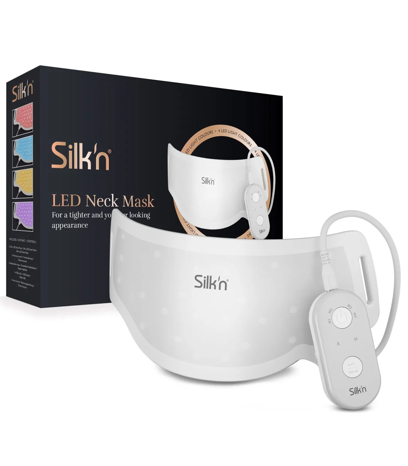 Een van de plekken die vaak vergeten wordt, maar toch erg belangrijk is voor een jongere uitstraling is de nek. Geef je nek daarom een boost met LED–licht. Silk’n LED Neck Mask werkt met rood, blauw, geel en paars LED–licht om zo onder andere fijne lijntjes, rimpels, de huidelasticiteit, pigmentatie en de huidtextuur aan te pakken. Voor een jonger uitziende en stralende huid.