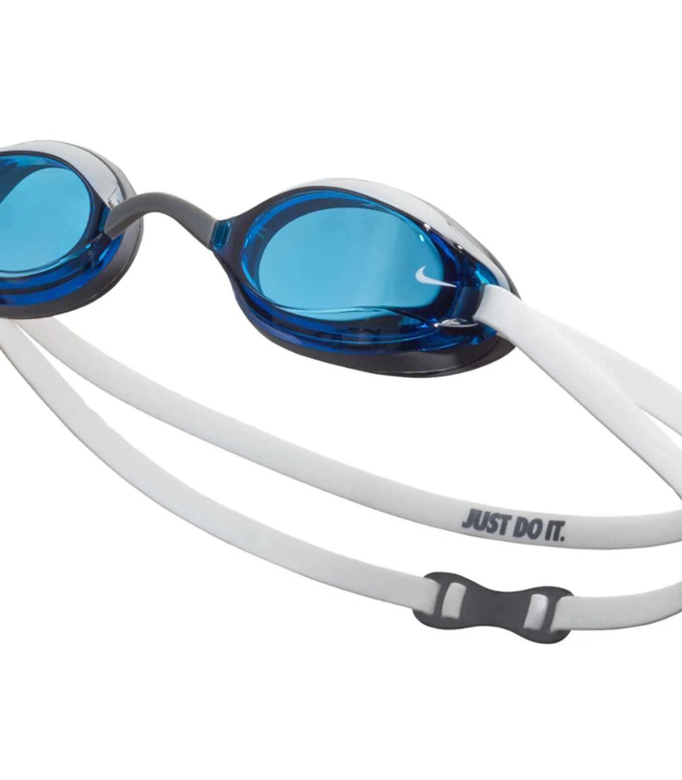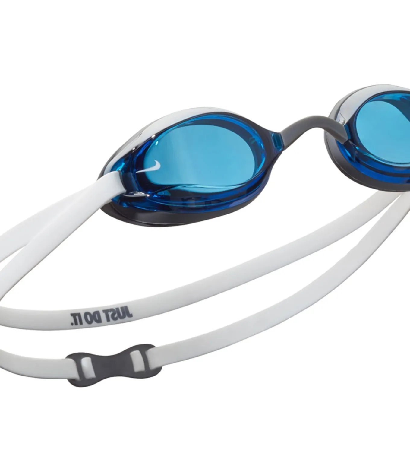 Nike’s zwembril LEGACY in gebroken wit biedt u een vereniging van traditioneel en moderne stijl. Het product bevat een polycarbonaat lens dat uwe oogveiligheid zal garanderen. De eenvoudige ontwerpstijl omvat een Nike–logo, waardoor het zwembril een unieke en identificeerbare look krijgt. Het is BPA–vrij en latexvrij, zodat u tijdens uw zwemavontuur geen ongemak zal ervaren. De flexibele neuskussentjes en siliconen hoofdband zorgen voor een comfortabele en perfect passende fitting.