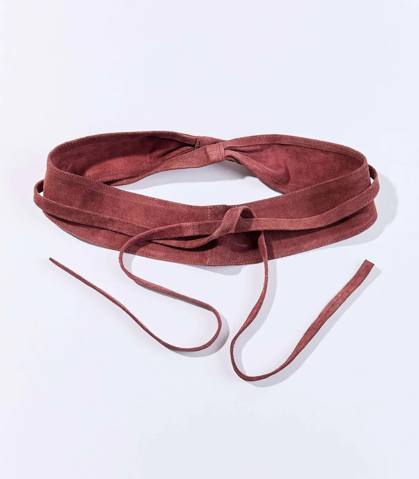 Suède leren ceintuur geïnspireerd op de Obi–vorm van Japanse kimono’s, om naar wens te knopen en de taille elegant te accentueren. Een verfijnd accessoire dat een originele en tijdloze touch aan uw outfits geeft. Productdetails: ceintuur van leer in Obi–vorm, om te knopen, maat 1: 276 cm, maat 2: 296 cm.