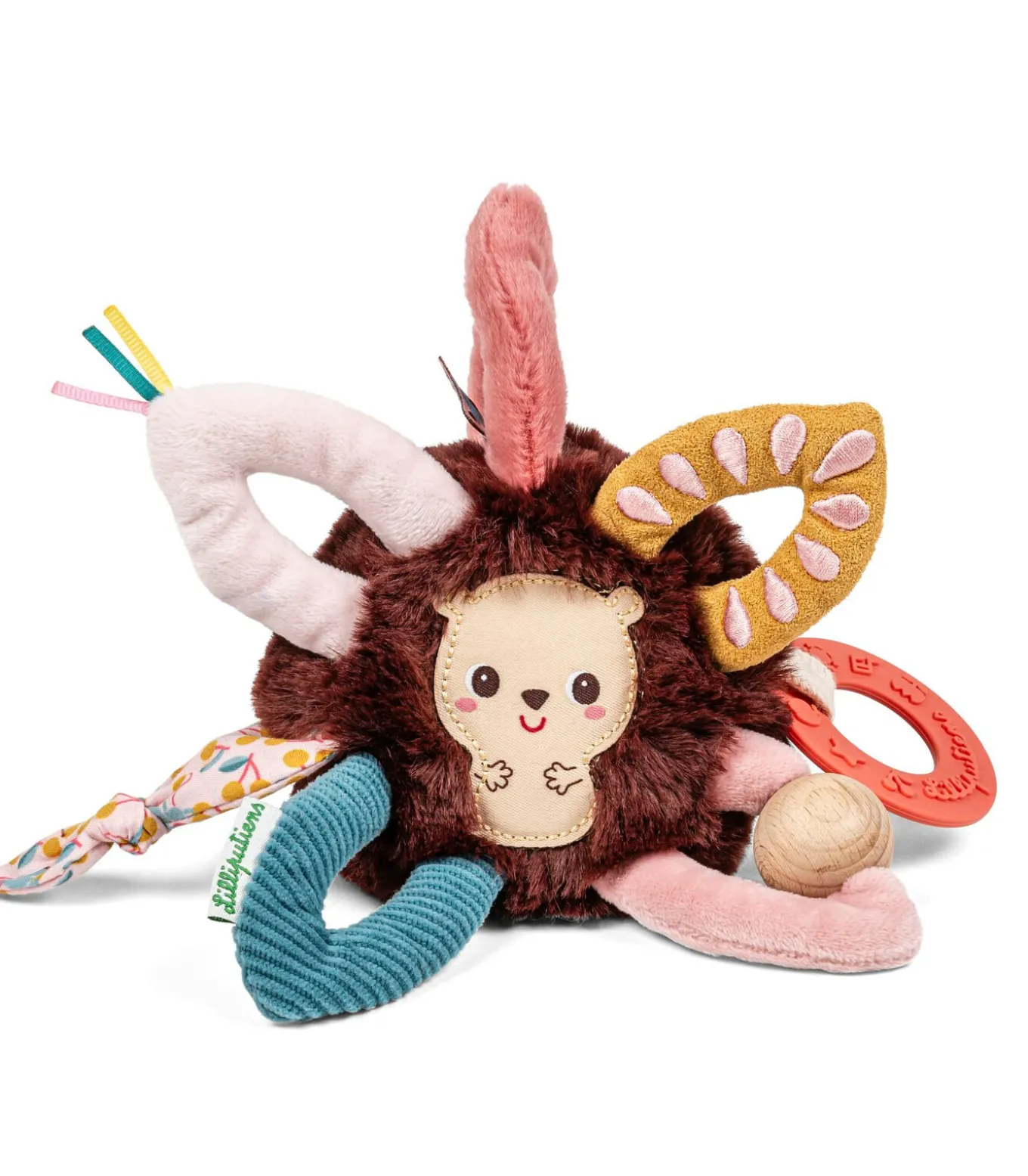 Lilliputiens sensorische bal baby speelgoed Leon de egel – grijprammelaarMet de sensorische bal van Lilliputiens, in de vorm van Leon de egel, begint voor baby’s een vrolijke ontdekkingsreis! Dit kleurrijke baby speelgoed prikkelt de zintuigen op een zachte manier en is speciaal ontworpen voor kleine handjes. De bal heeft vijf verschillende ringen, elk met een uniek gevoel, en allerlei leuke verlengstukken die het zicht, de tast en het gehoor stimuleren. Leon de egel is heerlijk zacht en nodigt uit om te grijpen, te voelen en te ontdekken. De verschillende materialen, borduursels en prints zorgen voor een verrassende ervaring bij elke aanraking. Dankzij de siliconen bijtring kan je kleintje bovendien zijn pijnlijke tandvlees verzachten tijdens het doorkomen van de tandjes. Deze grijprammelaar is makkelijk vast te pakken en ideaal voor baby’s vanaf de geboorte tot ongeveer 3 jaar. Laat je kindje samen met Leon op avontuur gaan en spelenderwijs de wereld ontdekken!Extra informatie Stimuleert tast, zicht en gehoor Met siliconen bijtring voor doorkomende tandjes Geschikt voor baby’s vanaf de geboorte Speciaal ontworpen voor kleine handjes