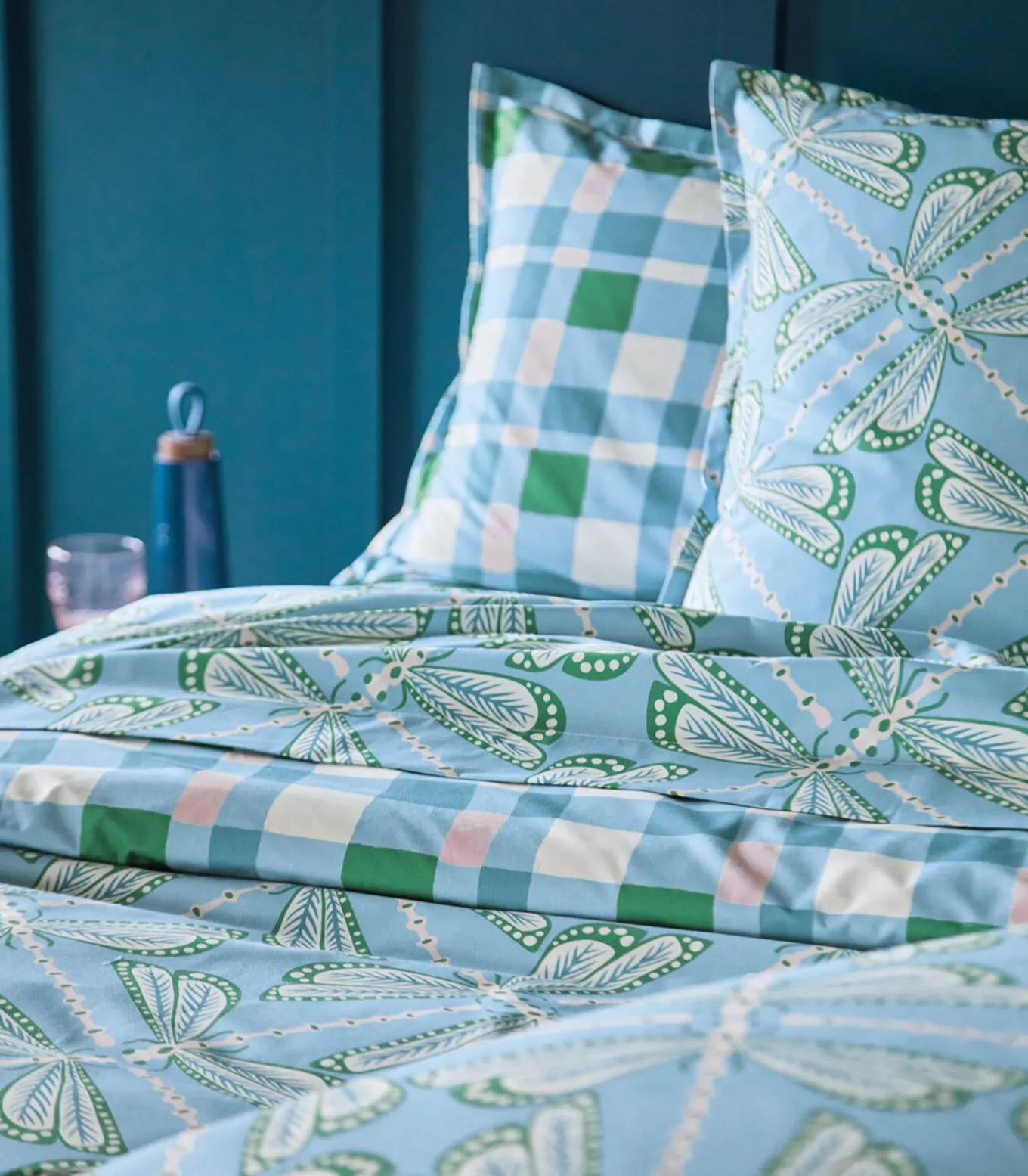Blauw kleed in satijn