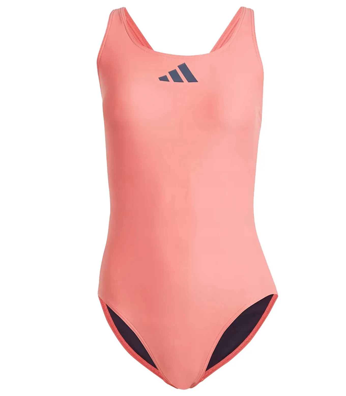 Adidas Badpak één stuk roze met logo, een kledingstuk van hoge kwaliteit en moderne styling. De houder is gebreid en bekleed met zacht aanvoelend tricot, wat levert comfortabele en aangenaam te dragen kleding op. Het logo van Adidas is afgedrukt in de houders en is een duidelijk te herkennen detail. De badpak kan makkelijk worden vastgehouden met pull–on en heeft een racerback rugstijl, wat levert aan een trendy uiterlijk. De hals van het kledingstuk is schep en is gemaakt van chloorbestendig tricot, zodat het goed bestand is tegen de invloeden van chloor. Het kledingstuk is strak gevormd om een aangenaam te dragen en aantrekkelijk uiterlijk te verkrijgen.