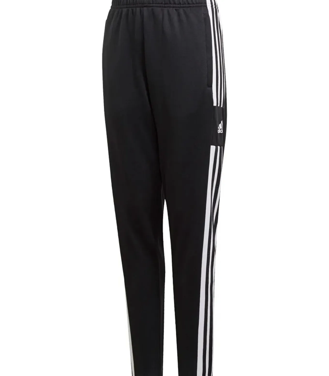 Adidas–merkken joggingbroek zwart met logo. Dit sportbroek is gemaakt van 100% polyester. Het ontwerp omvat een contraststreep en het logo van de merk. Er zijn rijen aan de enkels. Het broek beschikt over twee zijzakken met ritsen. De tailleband is elastisch en gemaakt van kordijn. Dit broek is geschikt voor losse lichamen.