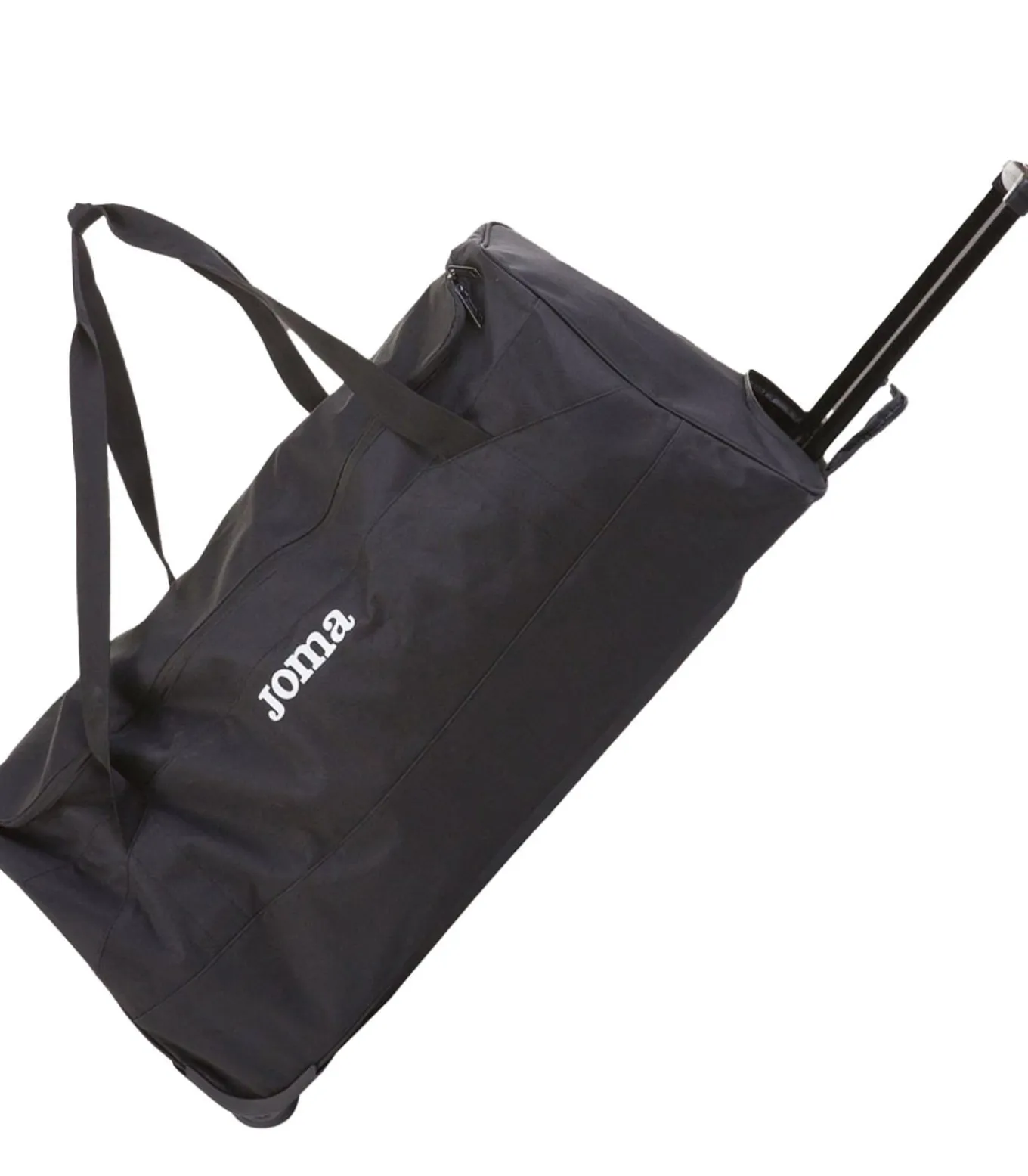 Joma’s zwarte zak met logo is gemaakt van 100% polyester en biedt een inhoud van 31,8 liter. Deze trolleyzak beschikt over één voorzak met rittensluiting, één hoofdcompartiment, twee wielen, handgrepen, een uitschuifbare trolleyhandgreep en een telescopische handgreep. Het ontwerp is elegant en eenvoudig en de bevestiging is tweewegrits. Deze praktische trolleyzak is perfect voor de dagelijkse reis naar school of het werk.