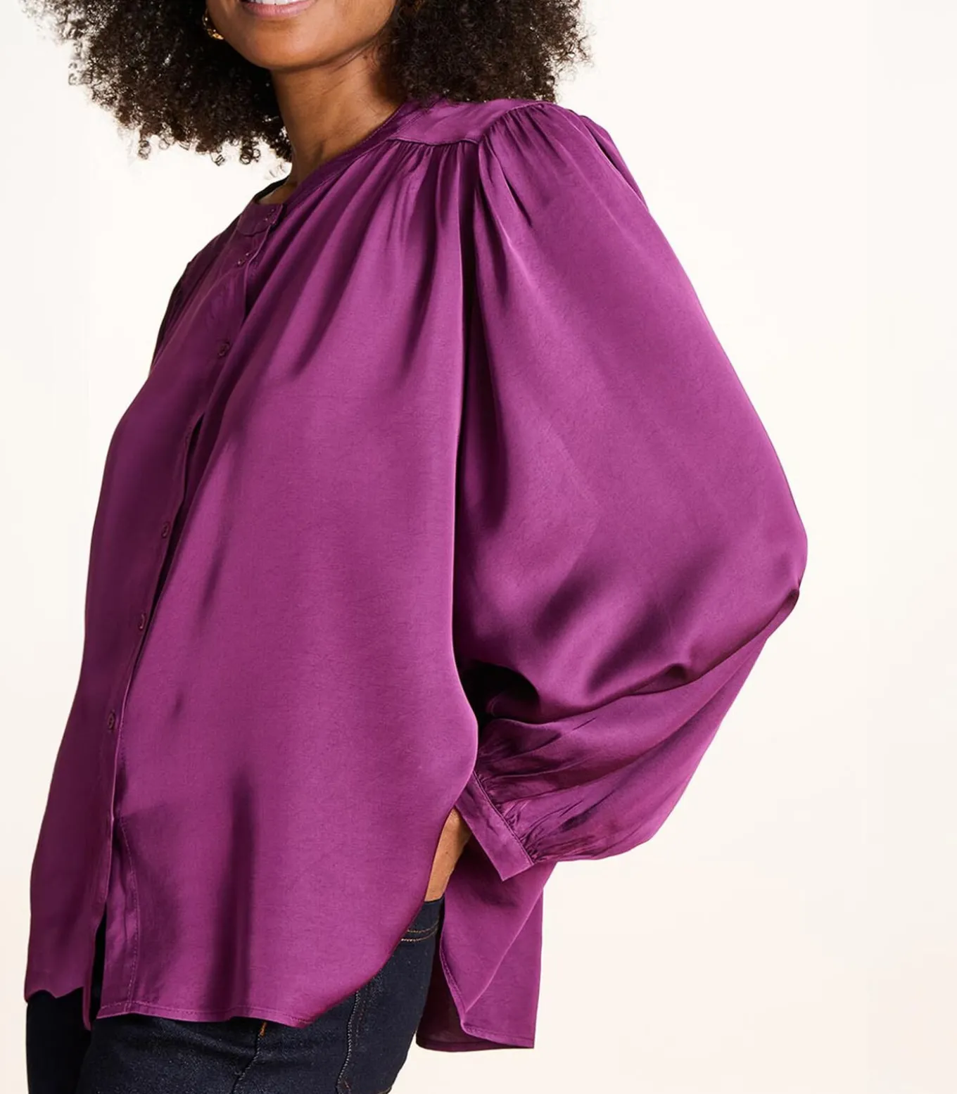 – Lange vleermuismouwen met knoopmanchetten en splitten