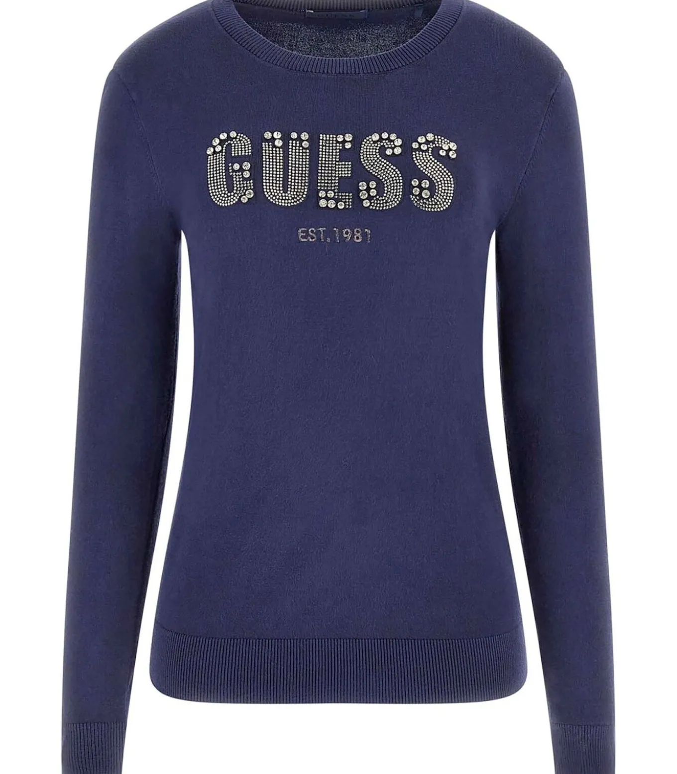 Kleur: Suiting Blue Samenstelling: 82% Viscose, 16% Polyamide, 2% Elastaan Mouwen: Lang Halslijn: Ronde hals Lengte: Regular Fit: Regular Fit Details: Trui van geverfd garen met logo–opschrift, gladde afwerking en geribbelde afwerkingen aan de hals, manchetten en zoom Gebruik: Ideaal te combineren met zowel casual looks als elegantere outfits
