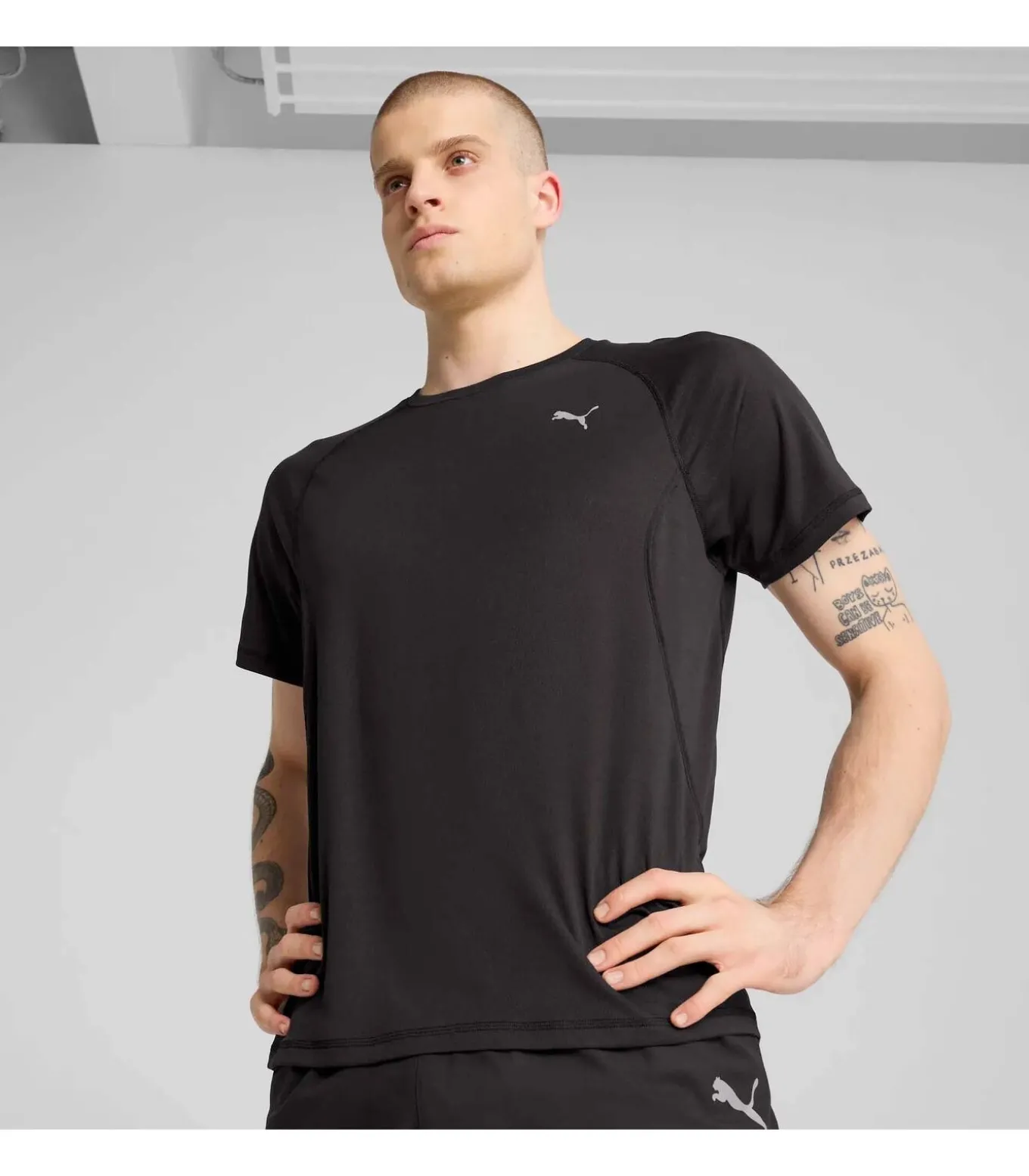 Kleur: PUMA Black. Samenstelling: 100% gerecycled polyester. Mouwen: kort. Halslijn: ronde hals. Lengte: normaal. Pasvorm: normaal. Details: dryCELL–technologie om de huid droog te houden; ergonomische snitten voor bewegingsvrijheid; platgestikte naden om wrijving te verminderen; PUMA–logo’s. Duurzaamheid: gemaakt van 100% gerecycled materiaal. Gebruik: perfect voor hardlopen en sporten, combineert technisch comfort met een hoogwaardige stijl.