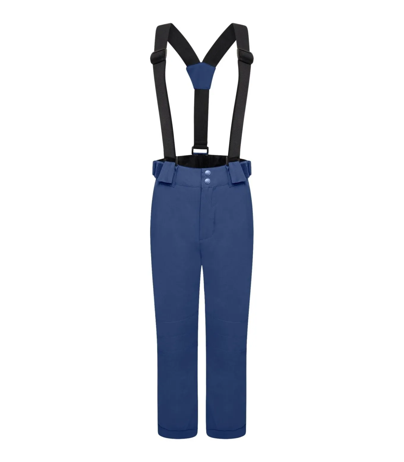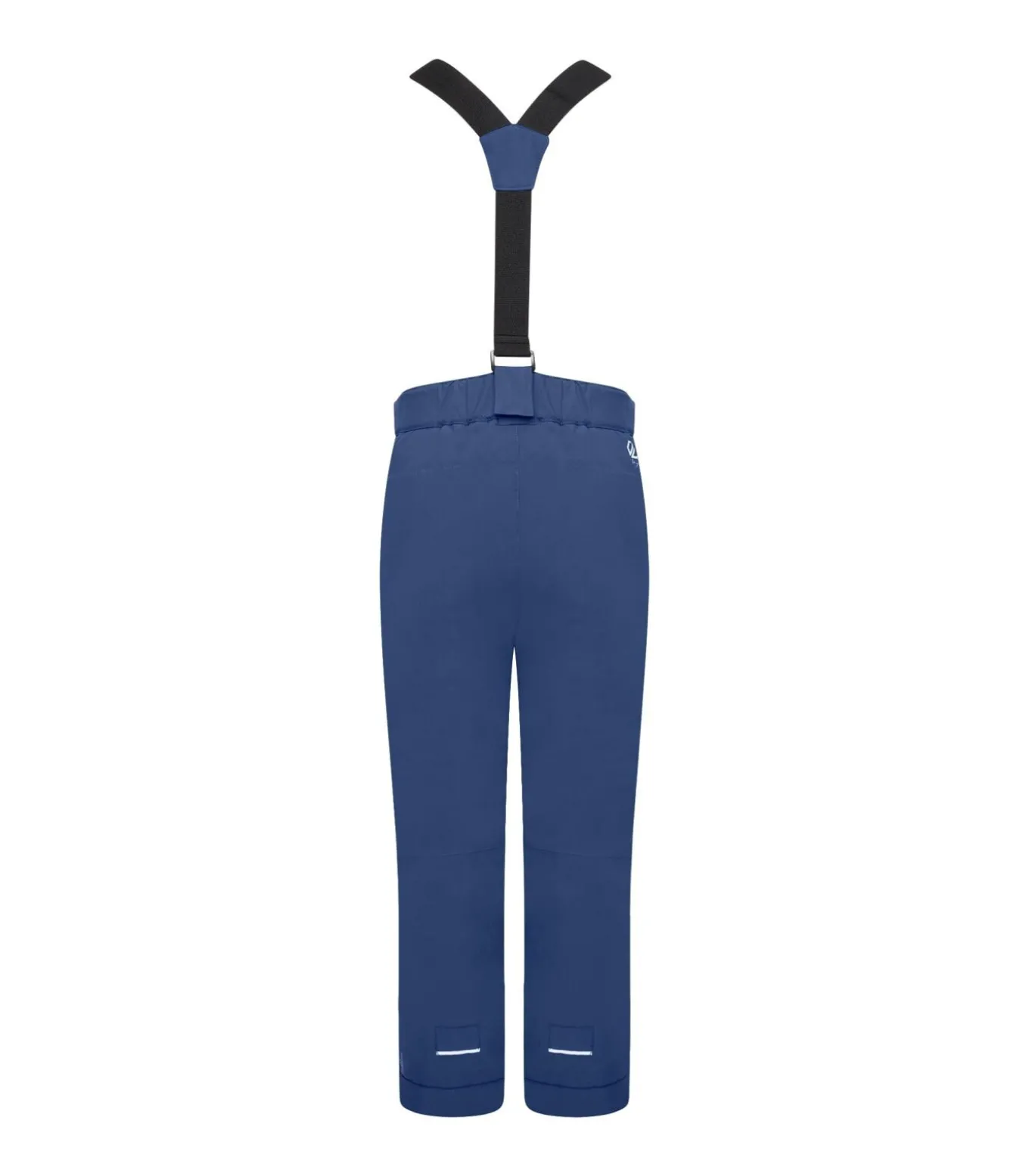 Deze productomschrijving beschrijft de belangrijkste kenmerken van de Dare 2B Children’s/Kids Motive Ski Pants. De broek heeft een waterdichte en ademende gecoate polyester twill stof aan de buitenkant. De broek heeft een waterafstotende afwerking en getapete naden om te voorkomen dat vocht binnendringt. High loft polyester isolatie is inbegrepen voor warmte. De binnenkant is gevoerd met polyester. Verstelbare en afneembare bretels zijn aanwezig met een schuifsysteem aan de voorkant voor een pasvorm op maat. De taille heeft een gedeeltelijk elastisch ontwerp met verstelbare riemen. Er zijn twee zijzakken met rits voor opslag. Aan de zoom zitten meegroeiende manchetten voor beenlengteveranderingen. Geïntegreerde sneeuwvangers helpen sneeuw uit de laarzen te houden. Reflecterende details zijn toegevoegd voor betere zichtbaarheid bij weinig licht.