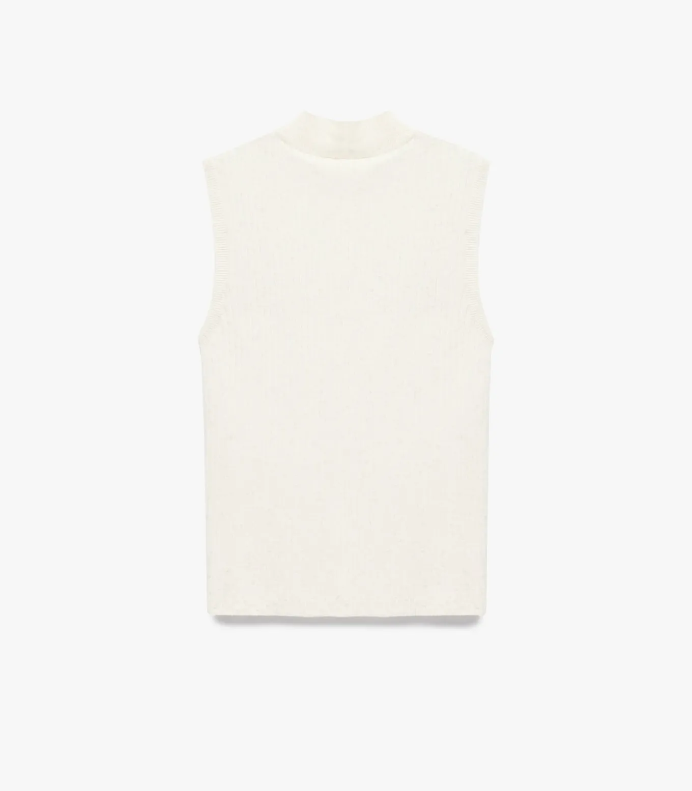 Deze elegante mouwloze trui is perfect voor zowel casual als formele gelegenheden. Het schitterende breisel en de hoge kraag zorgen voor een vleugje glamour, terwijl het veelzijdige ontwerp ideaal is voor elke outfit. Dankzij de comfortabele pasvorm omarmt de trui subtiel je silhouet, en de luxe materialen garanderen een hele dag comfortabel dragen. Combineer met een rok of een hoge taille broek voor een stijlvolle look.
