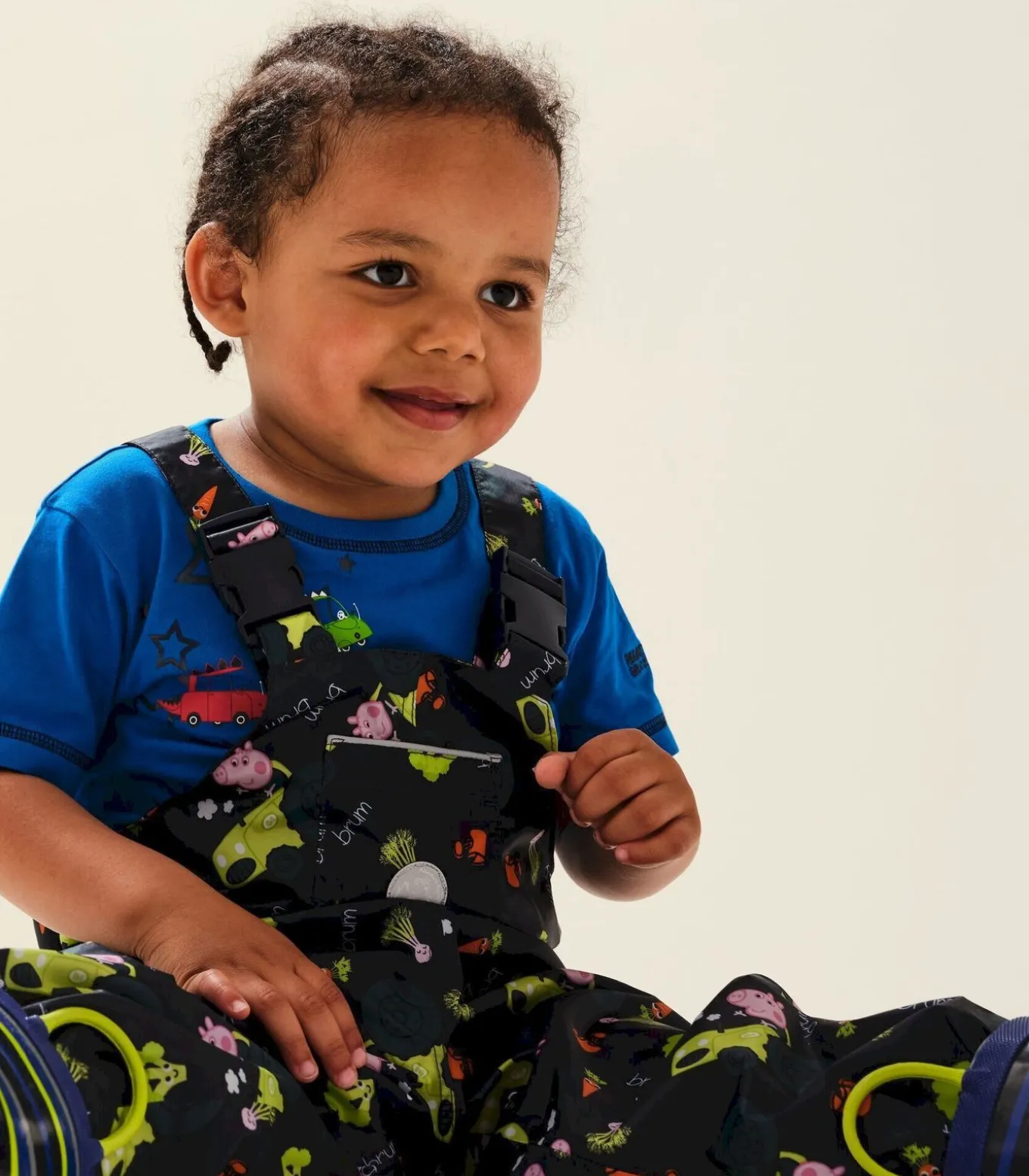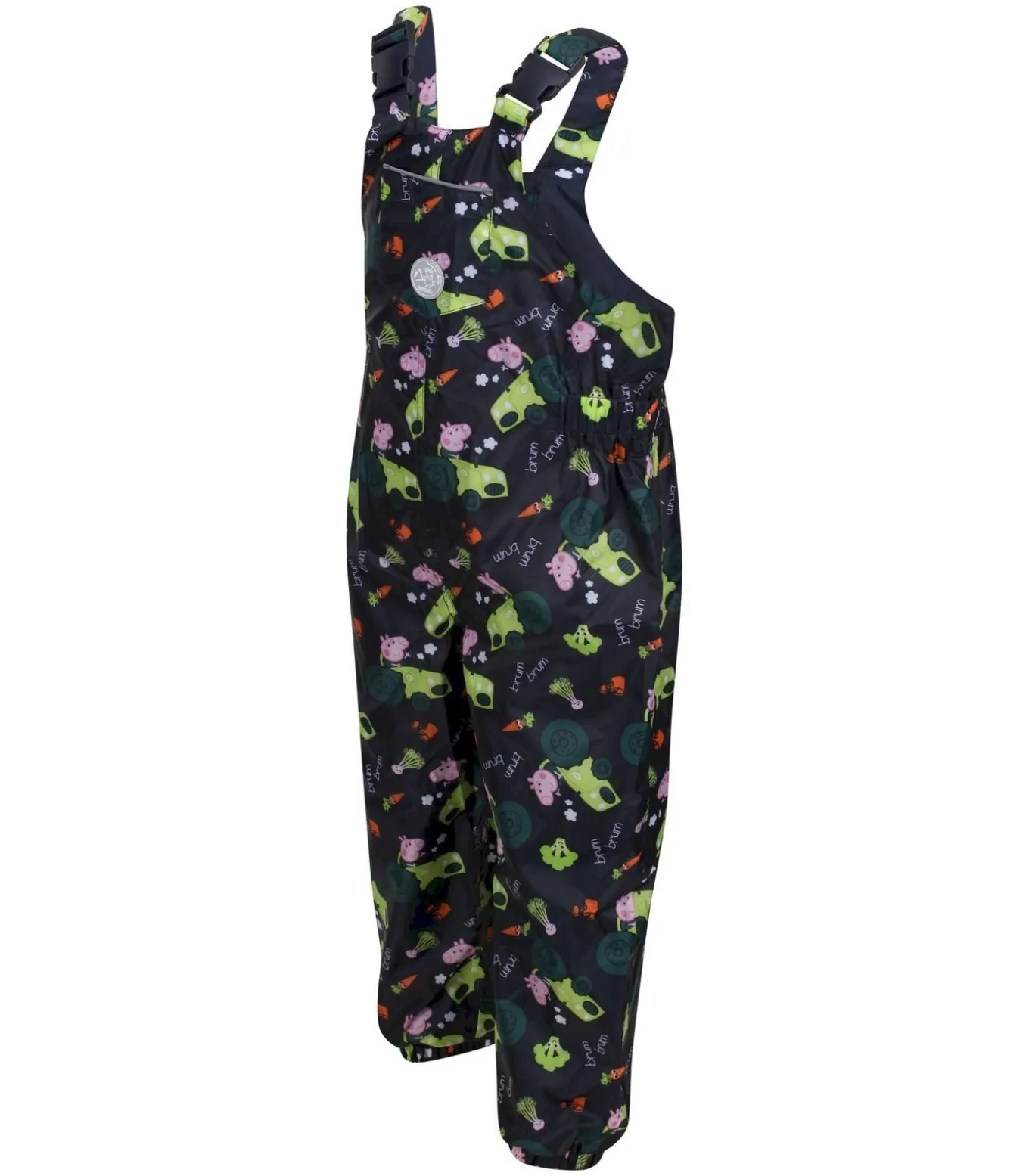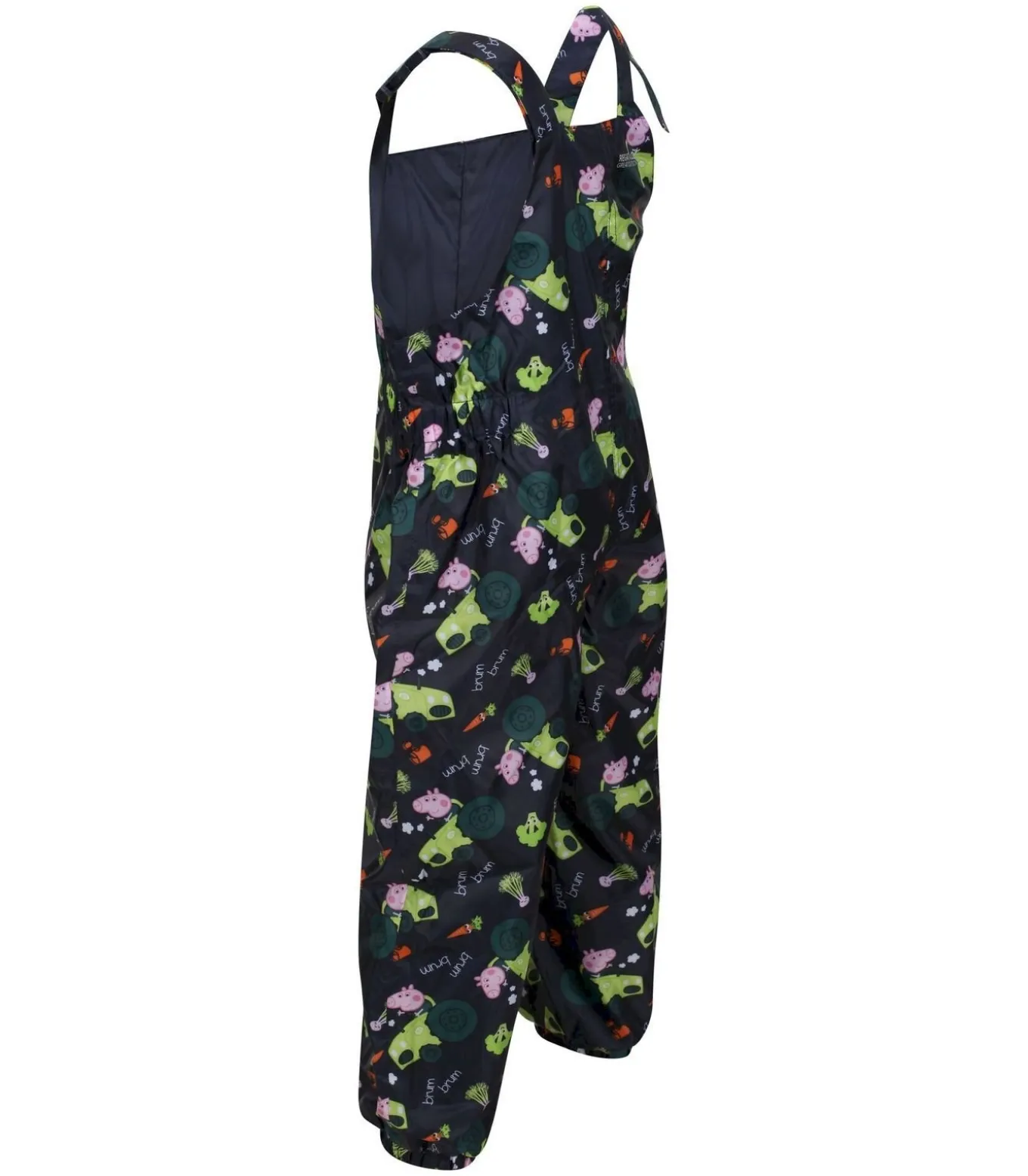 De Regatta Childrens/Kids Muddy Puddle Peppa Pig tuinbroek is gemaakt van 100% polyester isolite stof. Het ontwerp heeft een afbeelding van een wortel en het Peppa Pig logo. Het heeft verstelbare bandjes en een gesp voor bevestiging. De ademende, lichtgewicht en waterdichte stof houdt het kind droog. De tuinbroek heeft een elastische taille met reflecterende details voor zichtbaarheid. Het is officieel Peppa Pig merchandise onder licentie. Voor comfort en draaggemak zijn de manchetten en zomen elastisch. Het afgebeelde personage is George Pig.