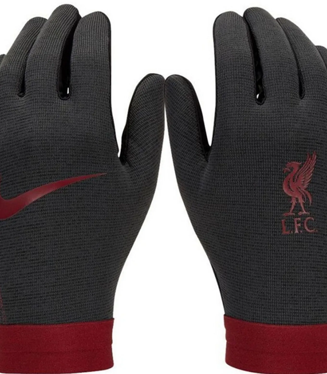 Liverpool FC NIKE zwarte handschoenen met thermisch Nylon en Polyester–stof. Deze handschoenen zijn officieel gelicentieerd, flexibel en hebben touchscreenfuncties. Het ontwerp is op contrast gebaseerd met coördermanchen en een contrast, rand en embleem–ontwerp.