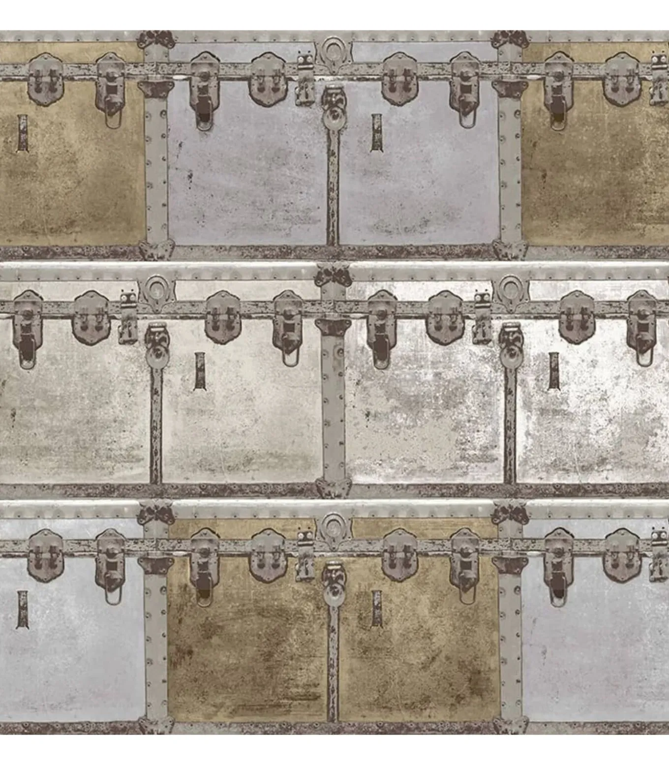 Dit metallic en grijze behang maakt deel uit van de Noordwand Friends & Coffee Boxes and Locks collectie, die bestaat uit een breed scala aan achtergronden met grafische prints van industriële tot moderne stijlen en in verschillende kleuren.