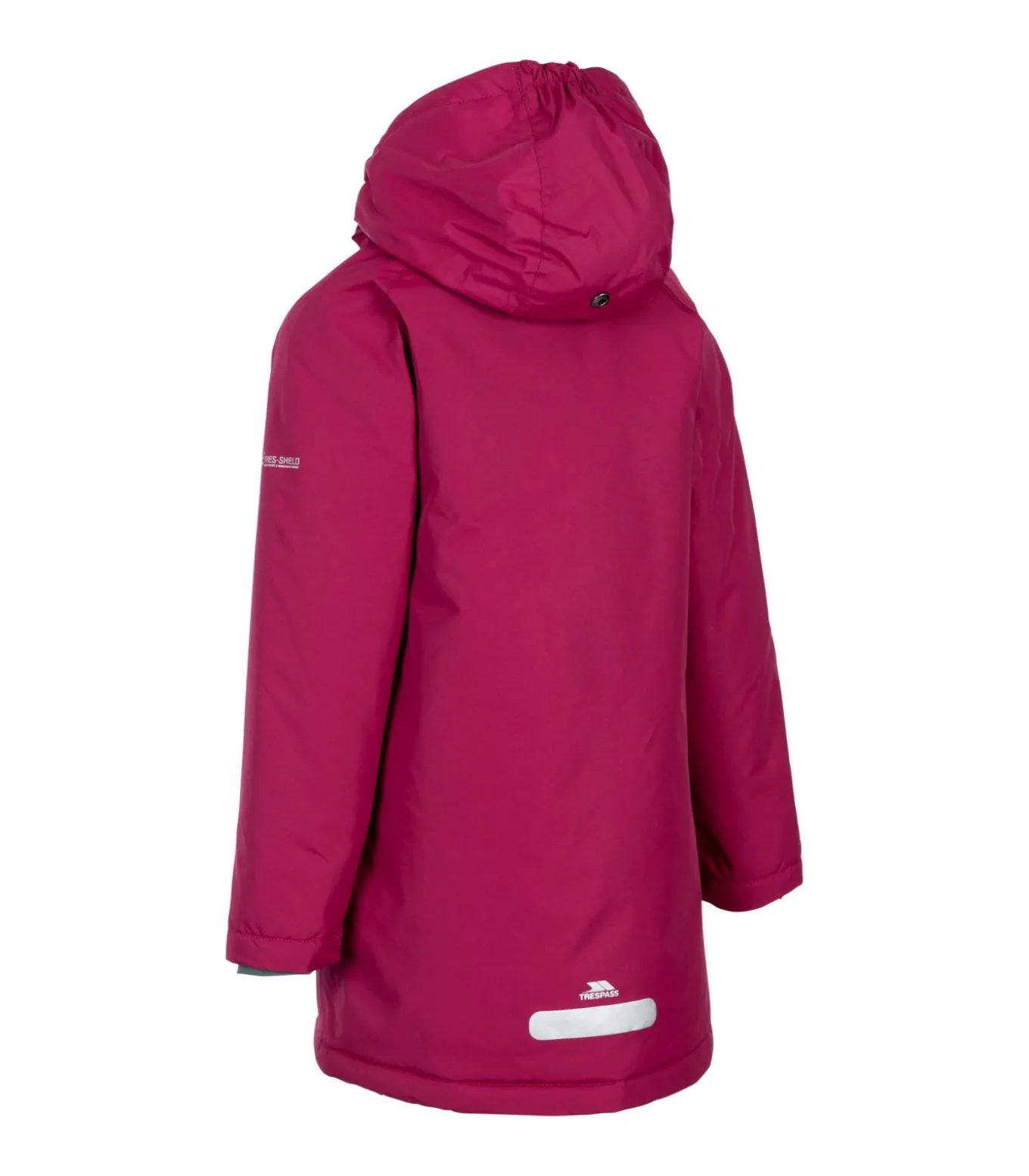 Deze jas van Trespass Girls heeft een buitenkant van 100% polyamide met een vulling en voering van 100% polyester. De voering is bedrukt, terwijl de buitenstof polyurethaan gecoat en geweven is. Het heeft logo– en mouwopdrukken en TP50 waterdichte en winddichte stoftechnologie. Het jack heeft een A–lijn vorm met padding en getapete naden. De halslijn heeft een afneembare capuchon en de manchetten zijn met jersey gevoerd. De lange mouwen en rits over de hele lengte zorgen voor volledige bedekking. Er zijn twee zakken met drukknoopsluiting voor opslag. Dit jack heeft een waterdichtheid van 3000 mm, zodat je beschermd bent tegen regen en vocht.