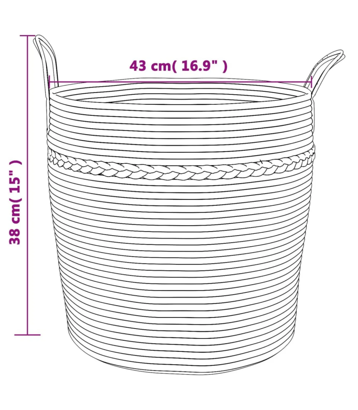 Duurzaam materiaal: de mand is gemaakt van geweven katoenen touwen. Het staat bekend om zijn ademende vermogen, zachtheid en uitzonderlijke duurzaamheid.