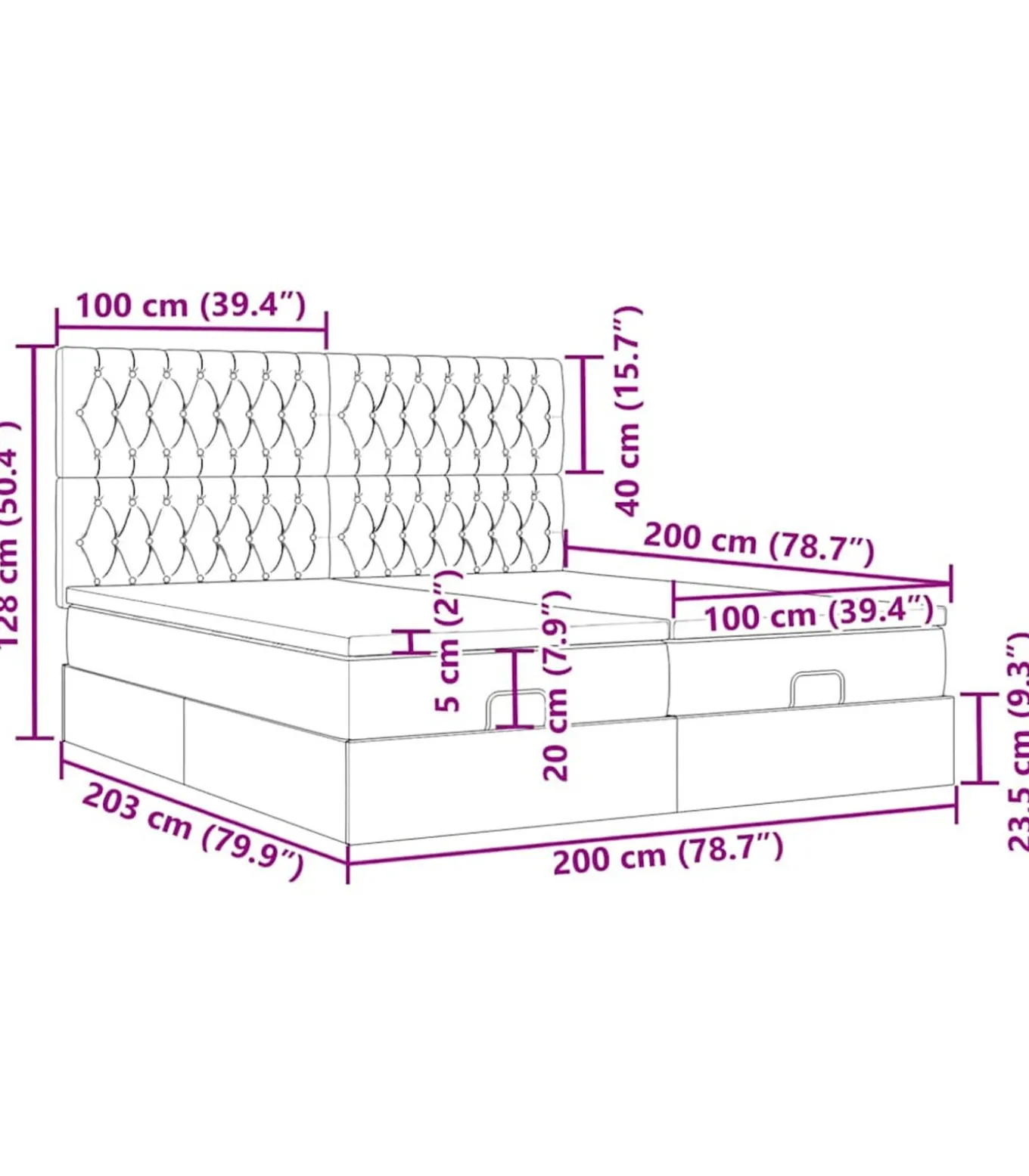 Totale afmetingen: 203 x 200 x 118/128 cm (L x B x H)