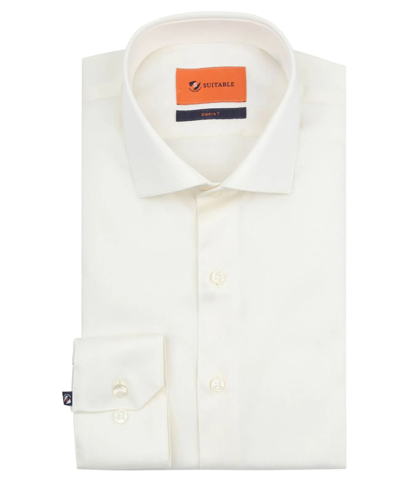 Met dit overhemd van Suitable zie je er altijd stijlvol uit. Het herenshirt heeft een Slim–Fit pasvorm en valt getailleerd om je lichaam. Het overhemd is afgewerkt in een twill binding met extra lange mouwen, enkele manchetten en een kent boord. Daarnaast is het shirt gemaakt van katoen waardoor het soepel valt, zacht aanvoelt en luchtig draagt.Gebroken witte kleurSlim–Fit pasvormGemaakt van 100% katoenExtra lange mouwen (sleeve 7)