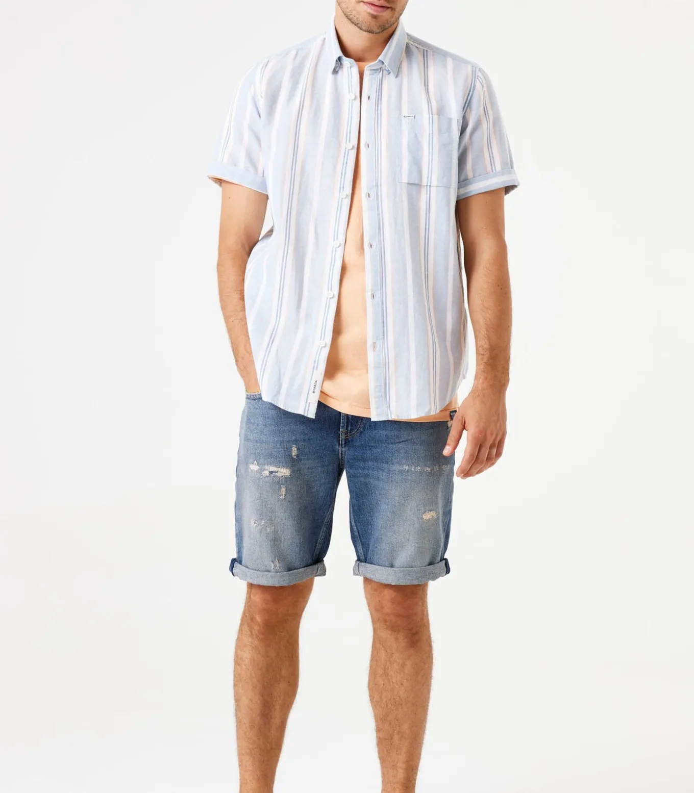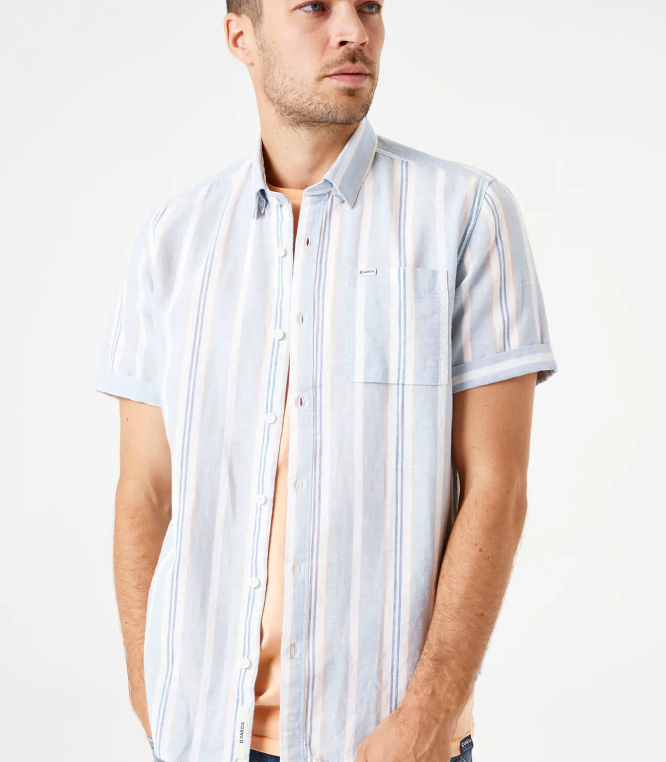 Gestreept overhemd van katoen en linnenmix met borstzakje. Een casual item met een trendy touch. Dit overhemd heeft korte mouwen, een knoopsluiting, een kraagje en een regular fit. Dit item is gemaakt van 70% katoen en 30% linnen.Better Cotton is een initiatief dat zich wereldwijd inzet voor betere omstandigheden in de katoenindustrie.