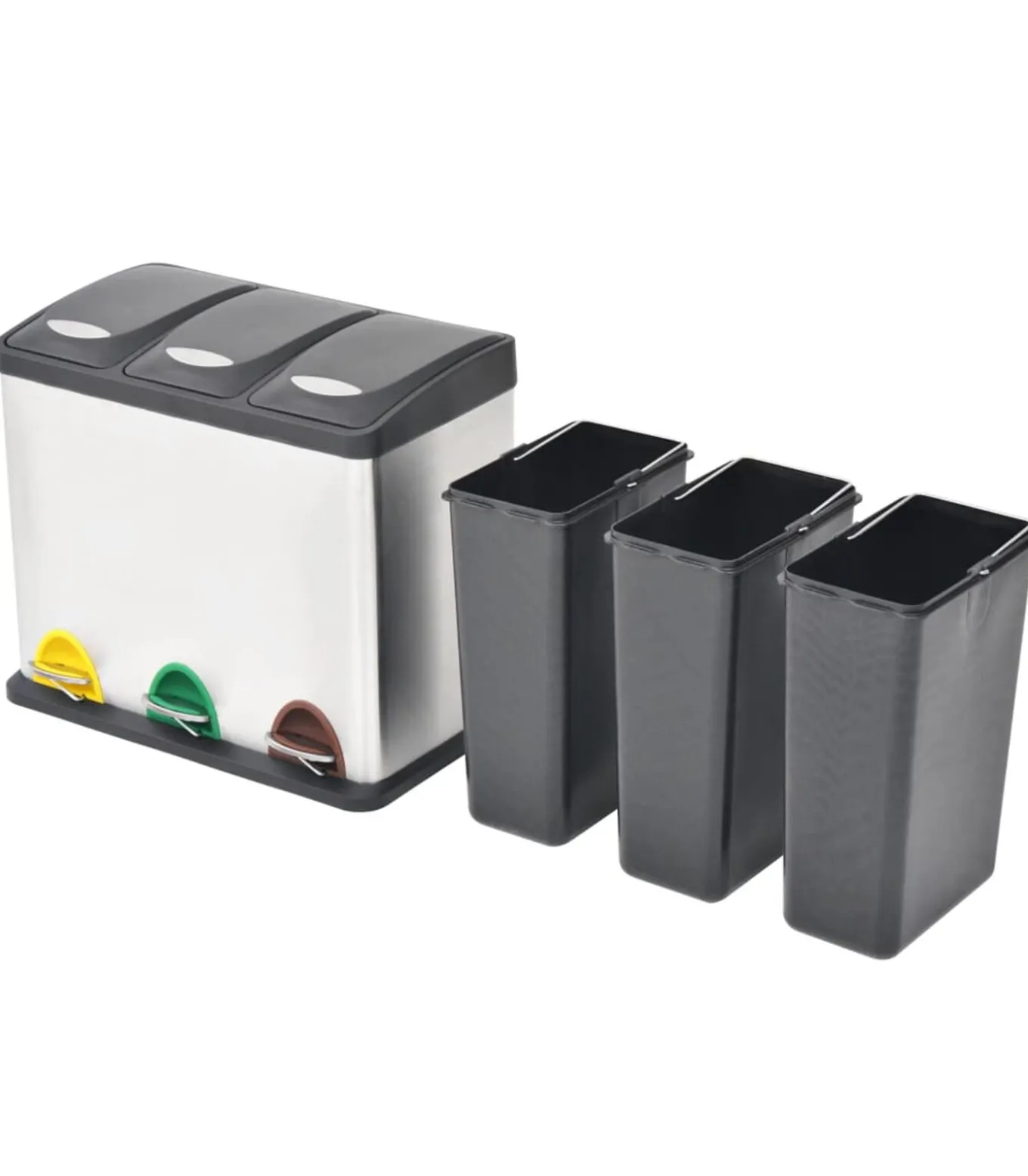 Deze chique, praktische recycle pedaalemmer is een must–have voor je keuken, woonkamer, kantoor, enz. De afvalbak is voorzien van 3 uitneembare binnenemmers voor het sorteren van het afval.