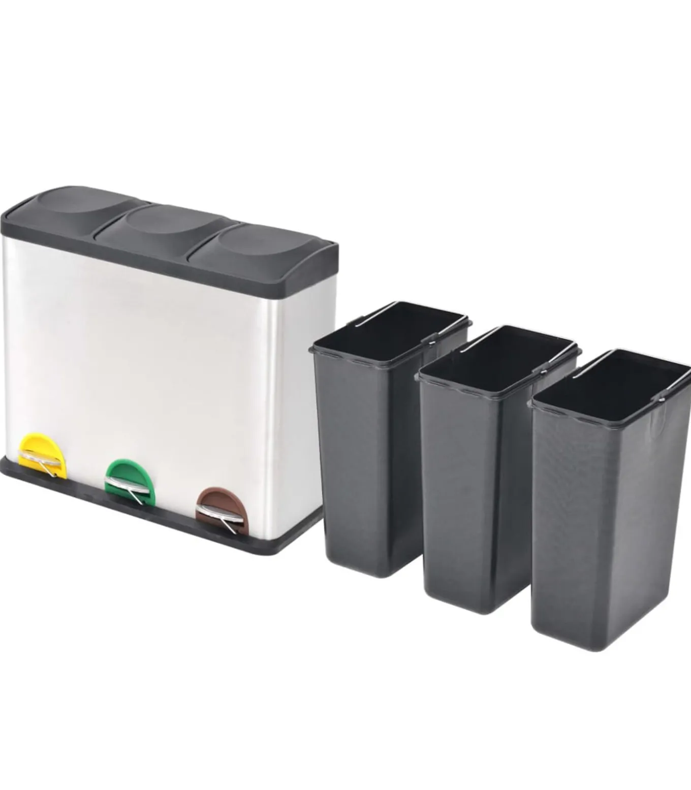 Deze chique, praktische recycle pedaalemmer is een must–have voor je keuken, woonkamer, kantoor, enz. De afvalbak is voorzien van 3 uitneembare binnenemmers voor het sorteren van het afval.