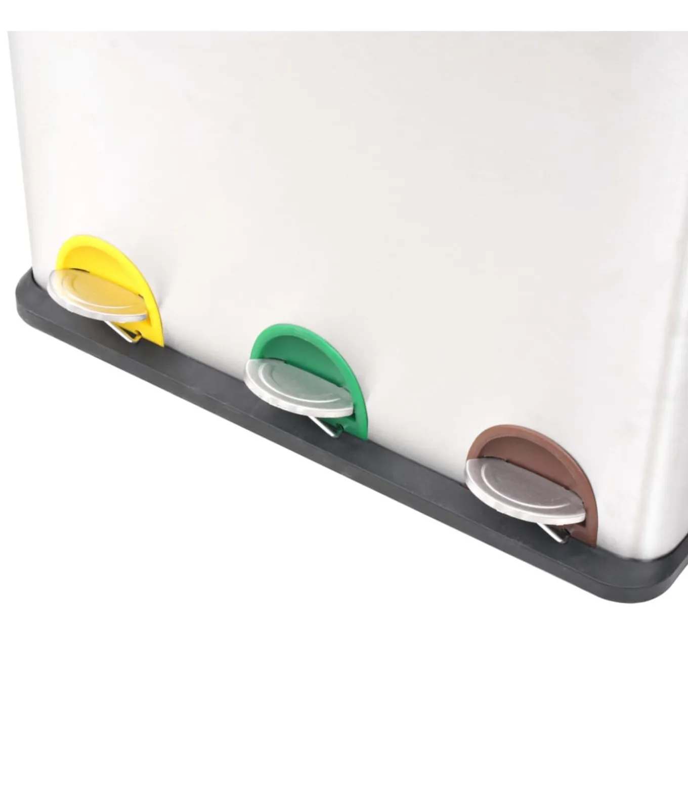 Je kunt de deksels moeiteloos openen en sluiten door op de pedalen de drukken. De sleuven achter de pedalen zijn kleur gecodeerd, waardoor je het afval nog makkelijker kan sorteren. De recycle pedaalemmer heeft een roestvrijstalen behuizing met matte afwerking, waardoor hij een chique uiterlijk heeft. De emmers, deksels en basis zijn gemaakt van duurzaam polypropyleen (PP). De soft–close deksels gaan zachtjes open en dicht. Wanneer ze gesloten zijn, voorkomen de deksels dat nare geurtjes zich verspreiden. Elke emmer heeft een groot handvat en kan makkelijk verwijderd worden.