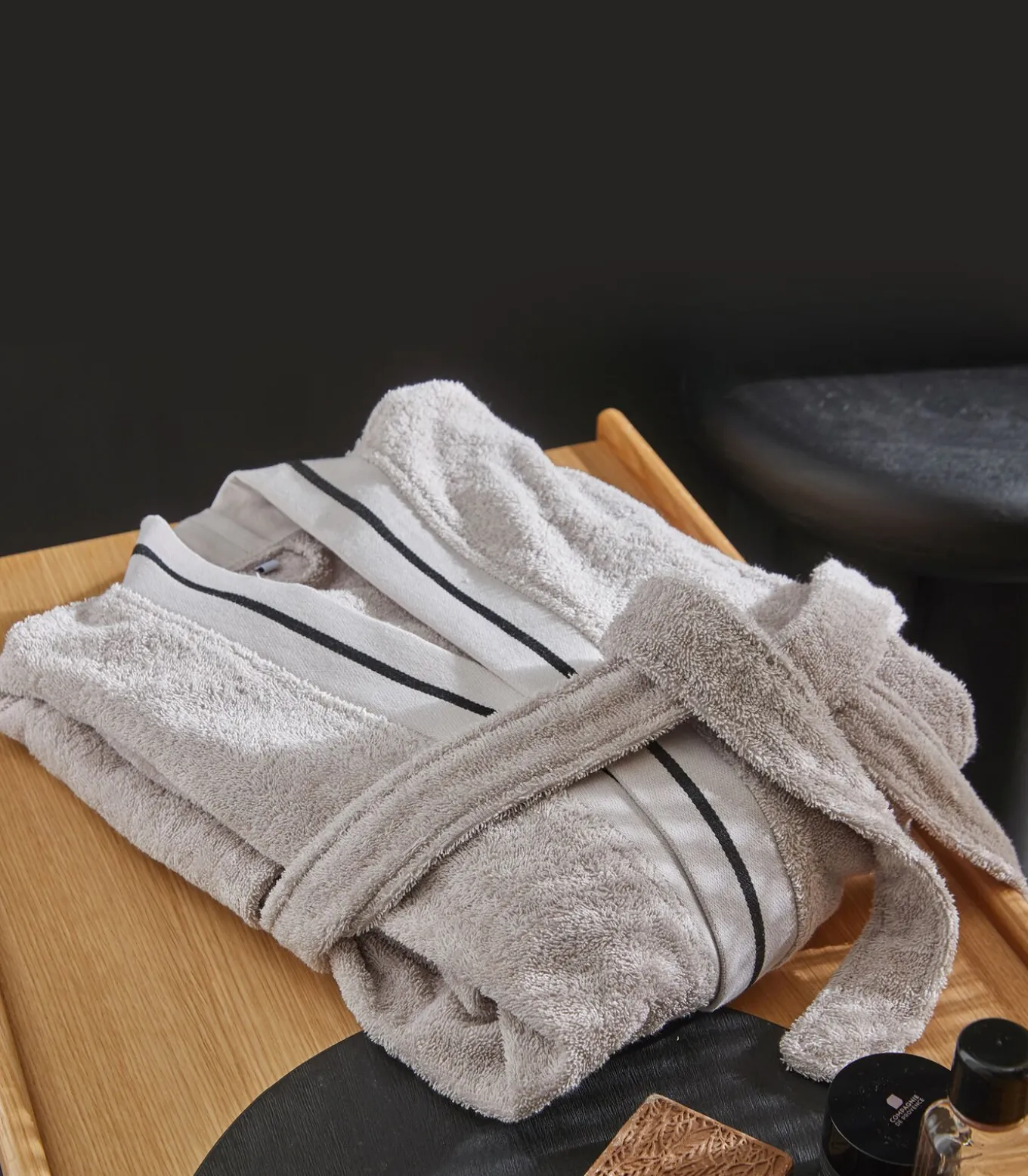 De PLAISANCE badjas van Blanc des Vosges is luxe die in huis komt. Gemaakt van 100% 420g/m² katoen, het is zacht, absorberend, comfortabel, van hoge kwaliteit en verkrijgbaar in een reeks tijdloze en elegante kleuren. Een beetje fancy op de kraag met een lijn die bij de badjas past. De gemengde snit is geschikt voor zowel een mannelijk als een vrouwelijk publiek.Deze badjas, bestaande uit een praktische lintriem en twee voorzakken, kan net zo goed worden gedragen na het baden als in cocooning–accessoires.Gemaakt in Turkije en Oeko–Tex gecertificeerd