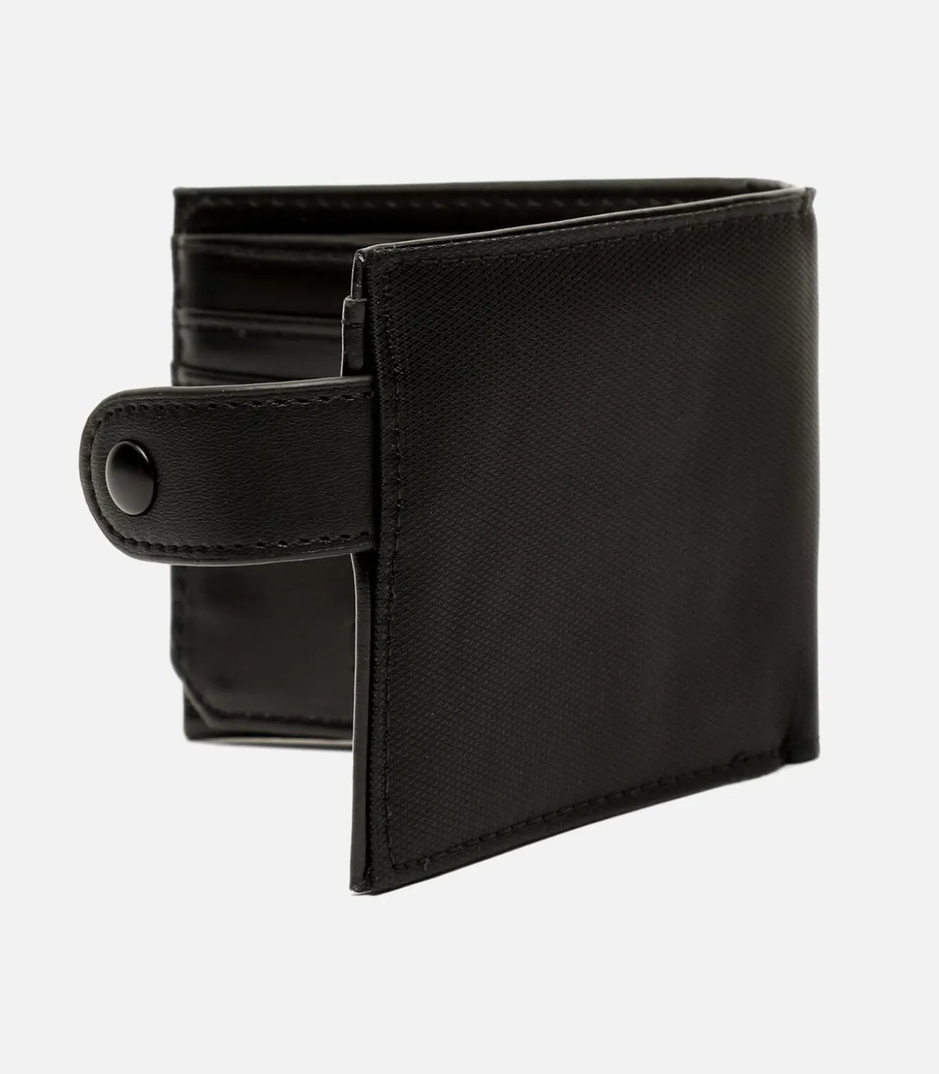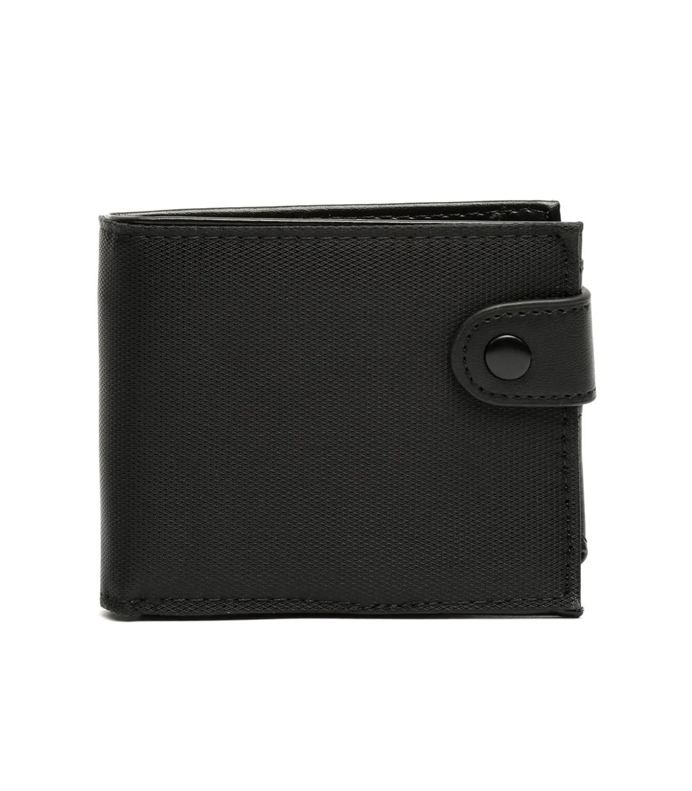 Deze zwarte portemonnee is een basic. Hij is voorzien van een kaarthouder, portemonnee en een klein muntvakje om ervoor te zorgen dat munten veilig en toegankelijk zijn. De drukknopsluiting voegt niet alleen een extra beveiligingsniveau toe, maar biedt ook snelle en handige toegang.