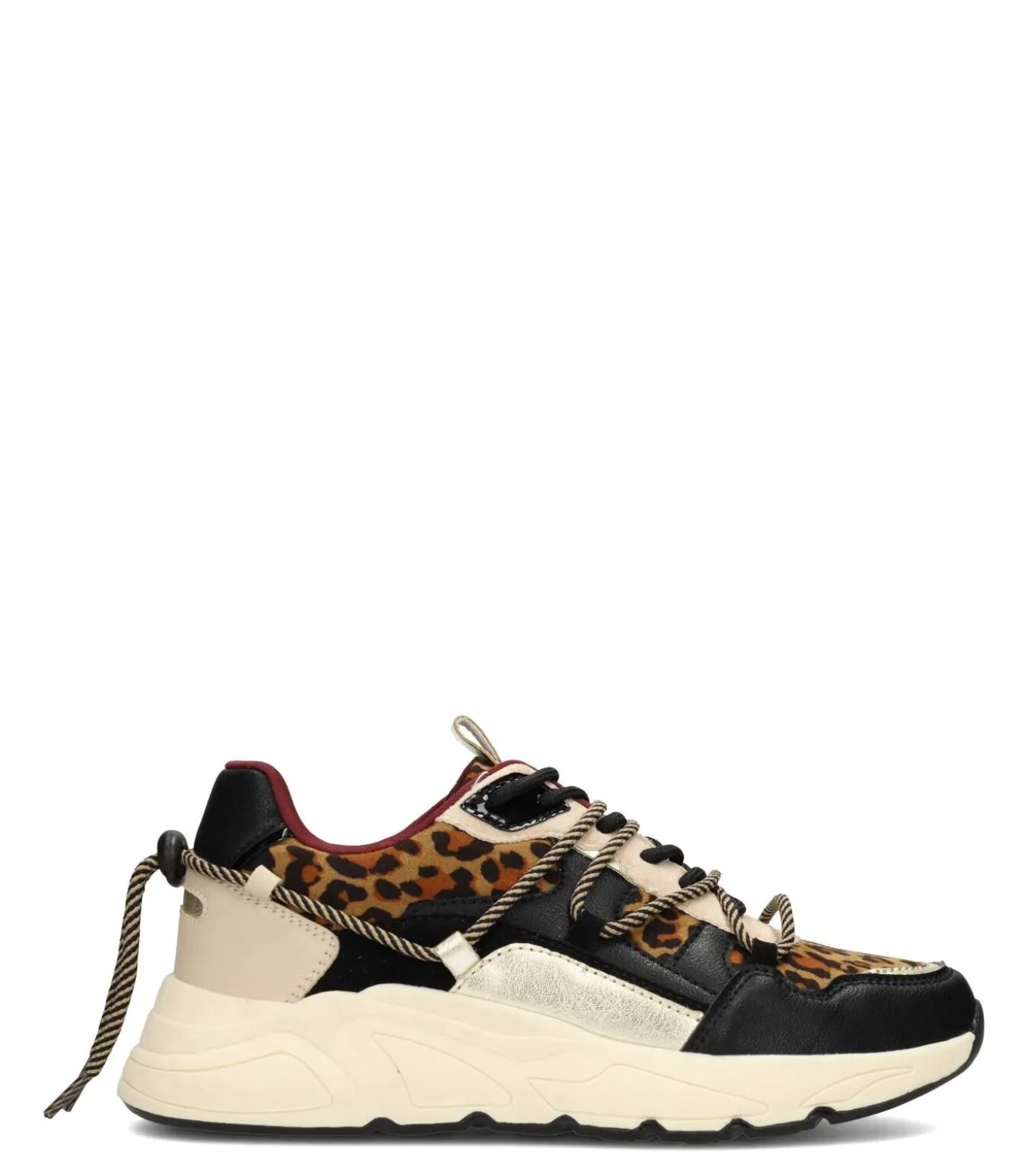 Trendy dames sneaker van POSH by Poelman, uitgevoerd in een mix van imitatieleer en imitatiesuède met panterprint. Voorzien van een comfortabele chunky zool van 4 cm en stoere touwveters. Opvallend, sportief en perfect voor elke casual outfit.
