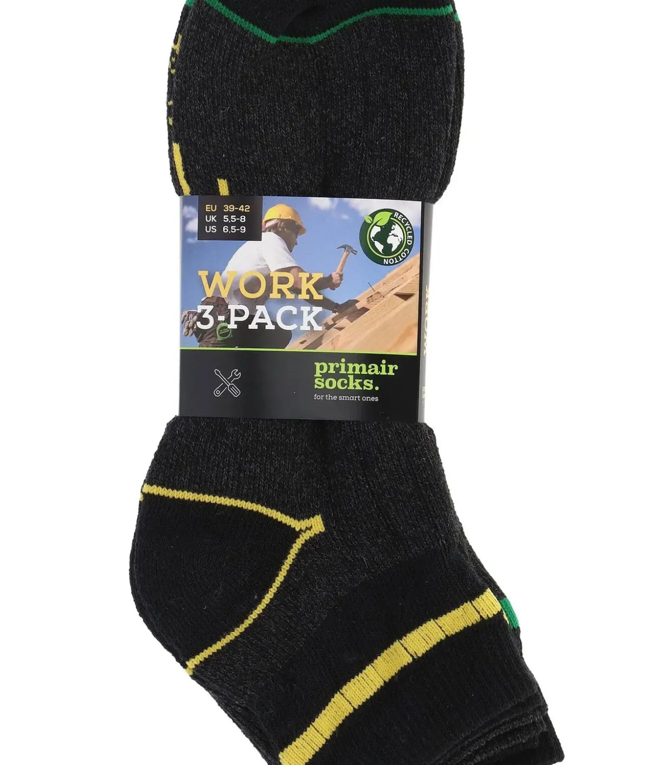 67% katoen (gerecycled) 30% polyester 3% elastaan: Dikke en stevige werksok van het merk Primair