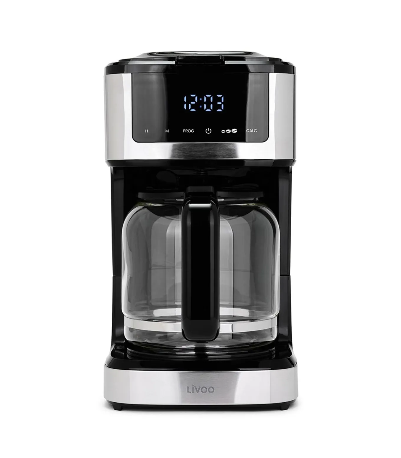 Grote capaciteit 1,8 L en 12 tot 15 kopjes, Vermogen 900 W, Verwijderbaar herbruikbaar filter, Timerfunctie (24 uur), warmhouden, espresso, reinigingsherinnering, Glazen karaf, Anti–druppelsysteem, Automatische uitschakeling 40 minuten na het einde van de koffiecyclus, LED– en touchdisplay, Waterniveau–indicator, 2 antislipvoetjes, Vaatwasmachinebestendige glazen karaf en filterhouder