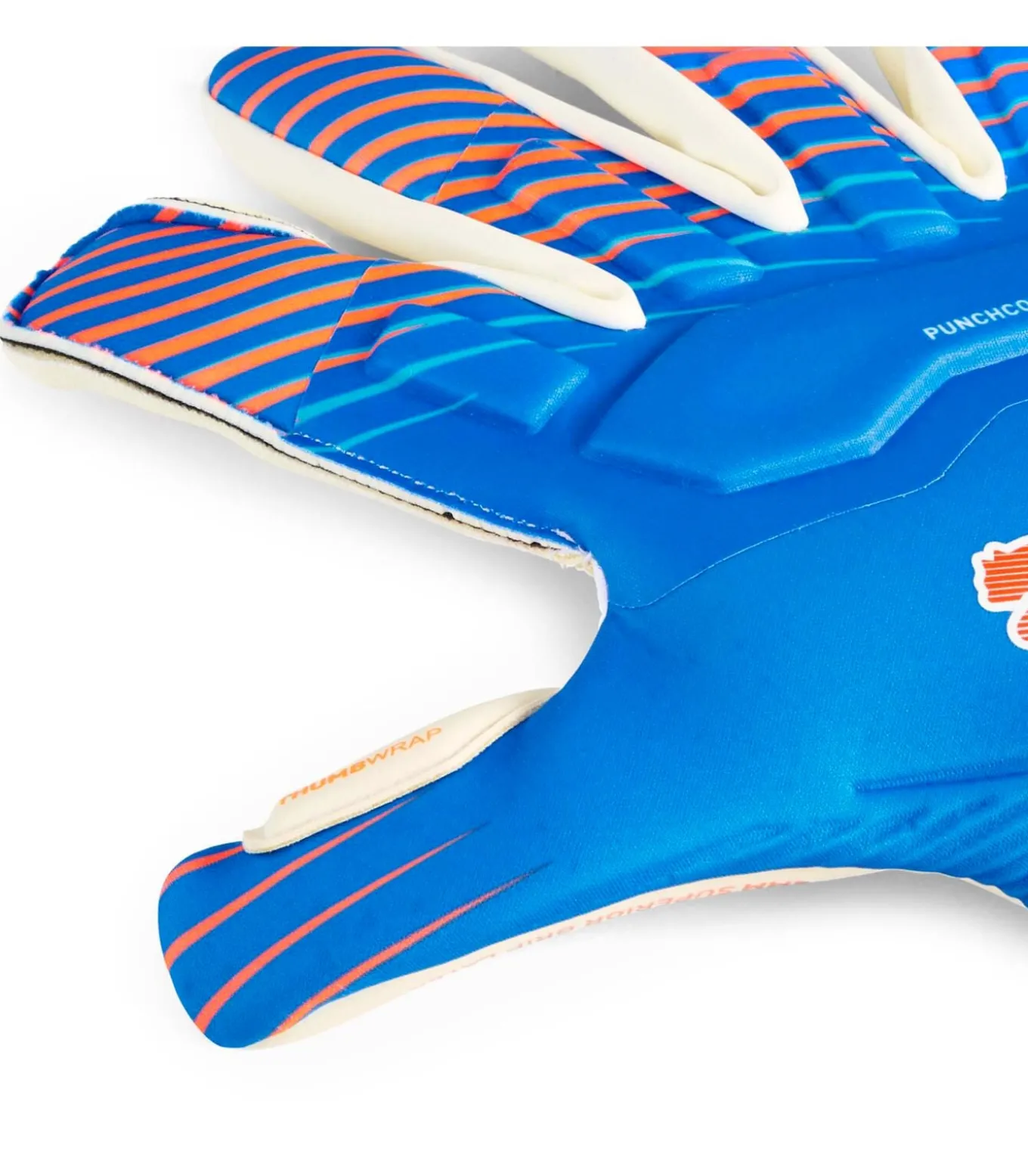 Kleur: Ultrablauw–gloeiend rood. Samenstelling: Handpalm 100% latex; Polsband 100% latex; Handrug 100% latex. Sluiting: Verstelbare elastische polsband. Details: 4 mm latex handpalm met superieure grip voor controle in natte en droge omstandigheden; PUNCHCONTROL PRO–technologie met gripkussentjes op de vingers en knokkels voor precisie en demping; Hybride snit voor meer grip en comfort; Lichtgewicht, rekbaar stoffen lichaam met perforaties voor ventilatie en bewegingsvrijheid; Duimwikkel met verlengde handpalm voor maximale grip; PUMA–logo’s. Gebruik: Ideaal voor jonge keepers die topprestaties willen, met controle en bescherming bij elke redding.