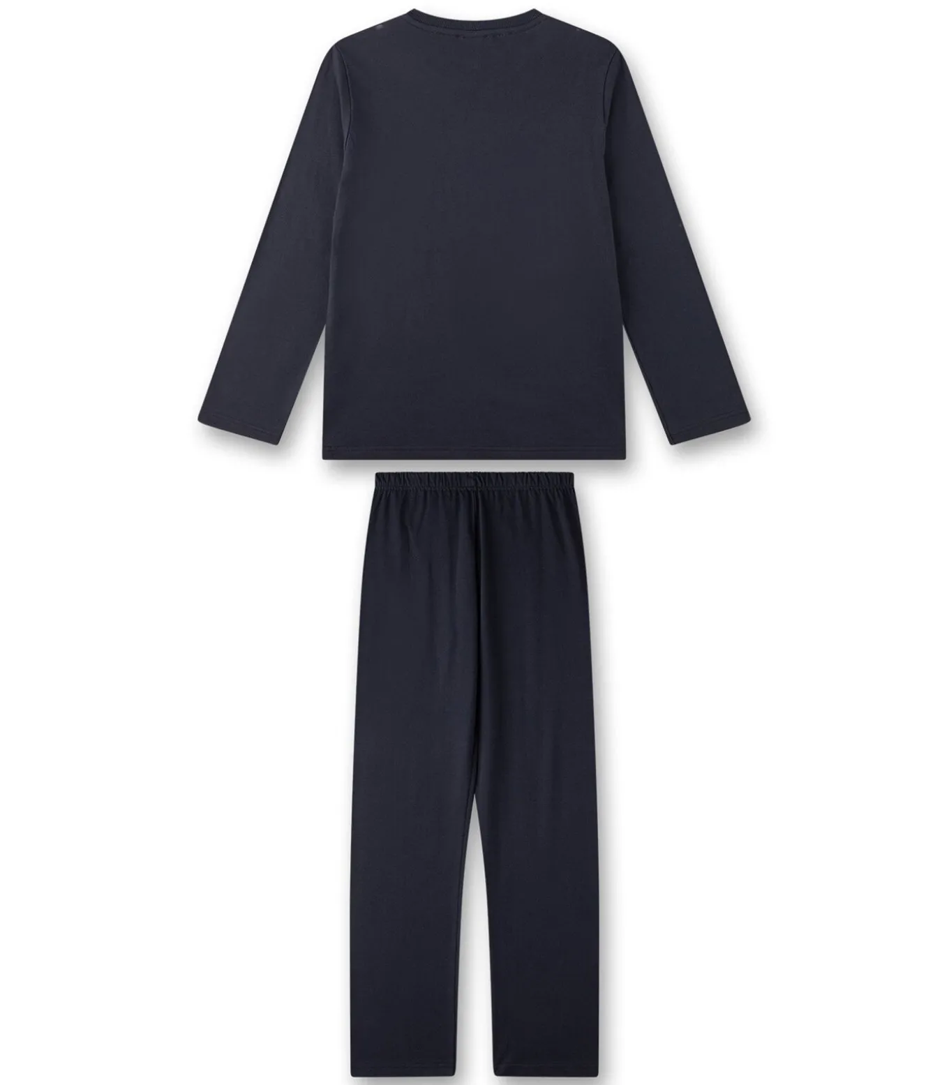 Lange pyjama voor jongens van het merk Sanetta. Shirt met lange mouwen, een groot motief op de voorkant en een ronde hals. Effen, lange pyjamabroek.