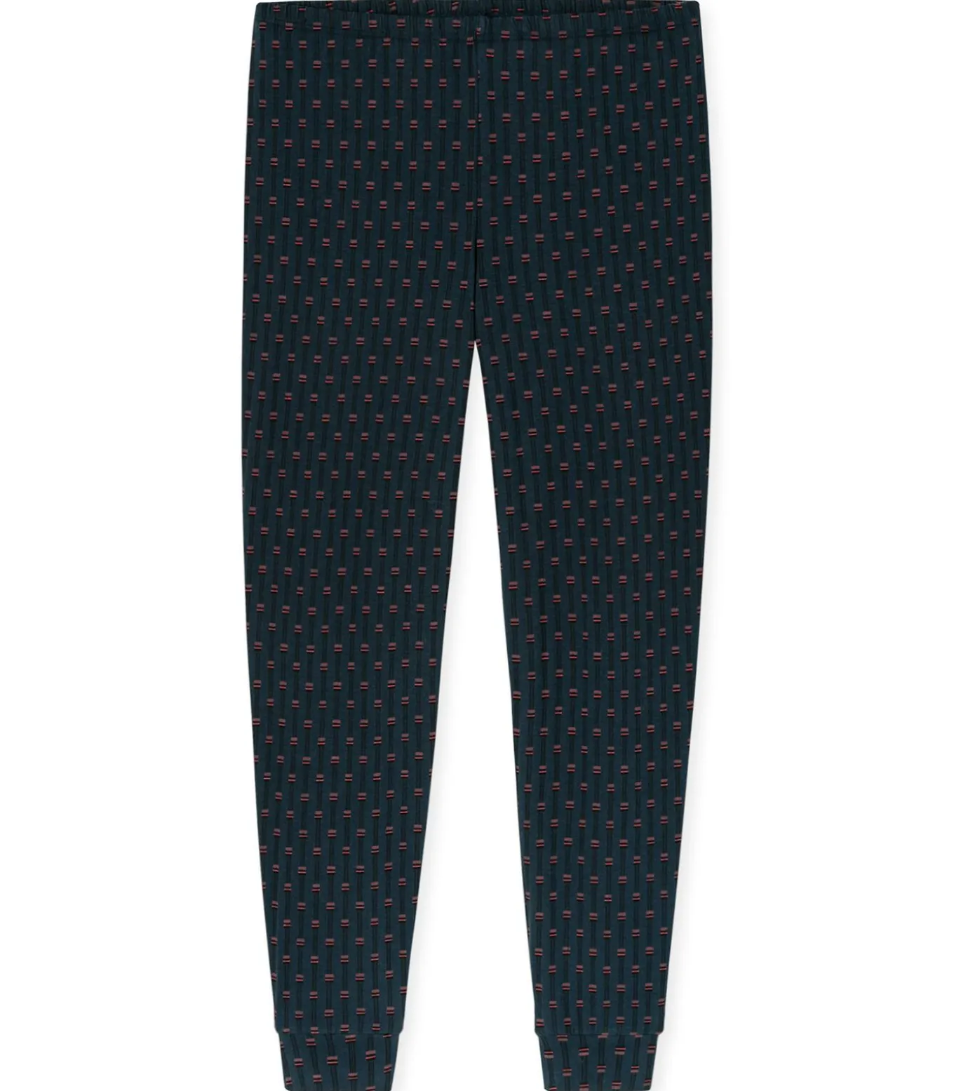 Pyjamaset voor heren van het merk SCHIESSER. Effen shirt met lange mouwen en V–hals. Lange pyjamabroek met patroon.