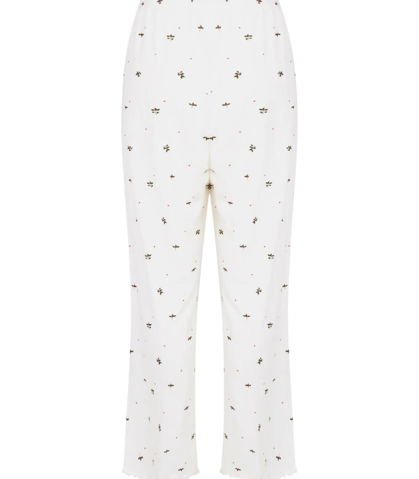 Voel het ultieme comfort in deze heerlijke lange pyjamabroek! Perfect voor een gezellig avondje thuis. Hij is gemaakt van een zeer zachte stof en heeft een mooi patroon en schattige ruches. Combineer hem met de bijpassende pyjamatop voor het perfecte comfortabele setje!