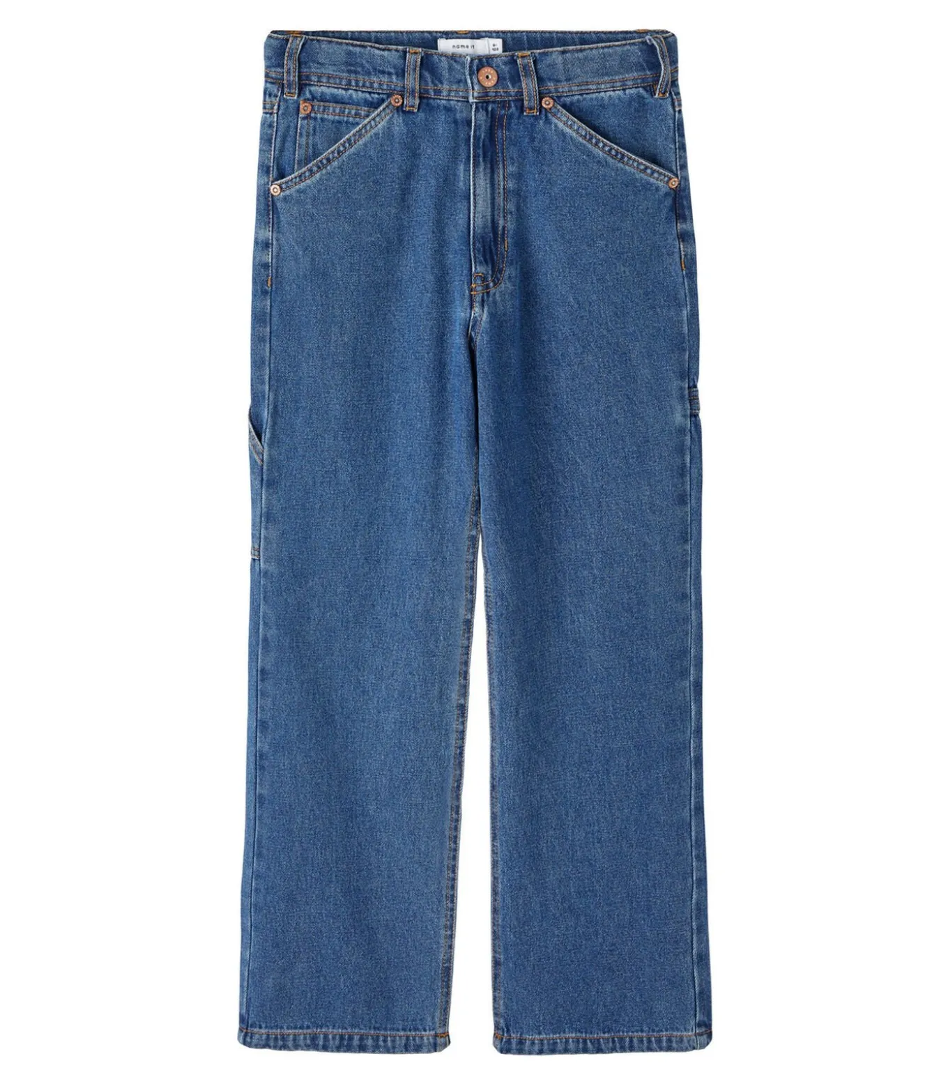– Details: Rechte pijpen, Rechte taille, Rivetten. Detail: Rechte spijkerbroek