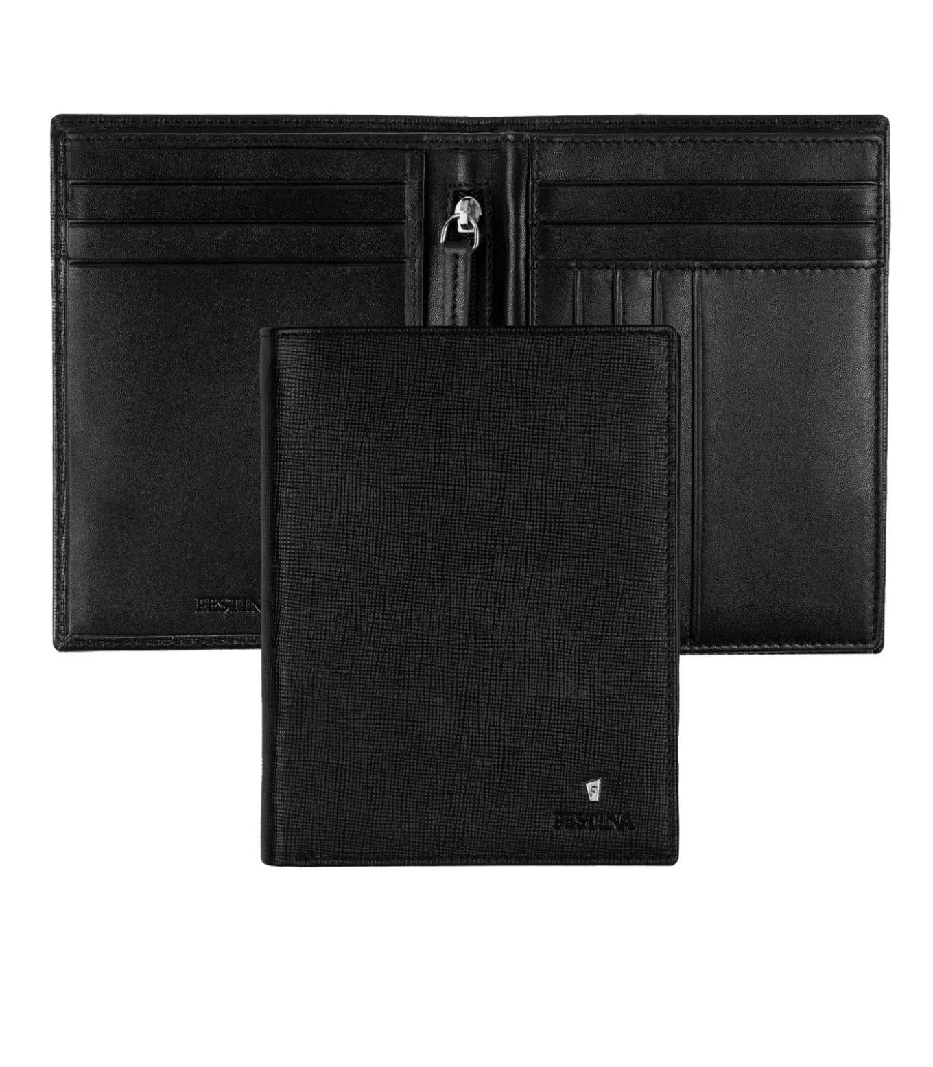 De “Chronobike” lijn van kleine lederwaren is gemaakt van zorgvuldig geselecteerd echt leder met een saffiano textuur. Deze zwarte versie is versierd met de iconische handtekening van het F–logo in de vorm van een trapezium, in chroomkleur. Het wordt onderstreept door de naam Festina die in reliëf in het leder is aangebracht. Deze kaarthouder is minimalistisch, compact en zeer praktisch, met talrijke vakjes voor pasjes en twee vakjes voor bankbiljetten aan de bovenkant. Alle Festina artikelen zijn voorzien van een beschermende RFID voering. Dimensions: 145 x 115 x 27 mm, Material: Leather