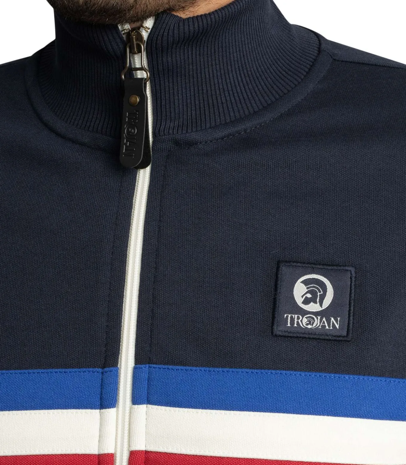 Het Trojan Retro Stripe Track Jacket in marineblauw heeft een sportief silhouet en een tijdloze, draagbare kleur. Het jack is voorzien van het logo op de borst, een sterke rits met merklogo en functionele ritszakken voor praktische opbergruimte. De elastische manchetten en zoom houden de warmte vast, terwijl de elastische kraag zorgt voor comfort. Dit Trojan jack is perfect om te dragen in verschillende seizoenen en combineert moeiteloos met een casual broek, sneakers en gelaagde T–shirts.