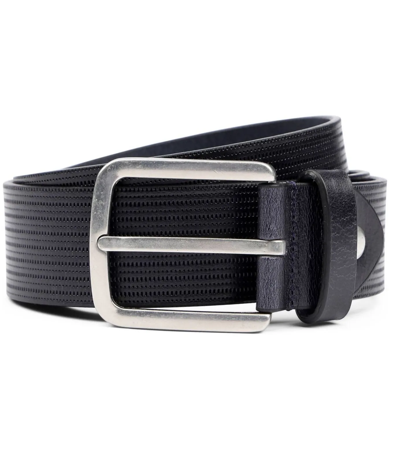 Je outfit is pas echt compleet met deze lederen riem van Suitable. De herenriem heeft een blauwe kleur in een structuur en is voorzien van een zilverkleurige gesp. Draag de riem bij uw favoriete jeans, een chino of een pantalon. Blauw gekleurdGemaakt van leer3,8 centimeter breed