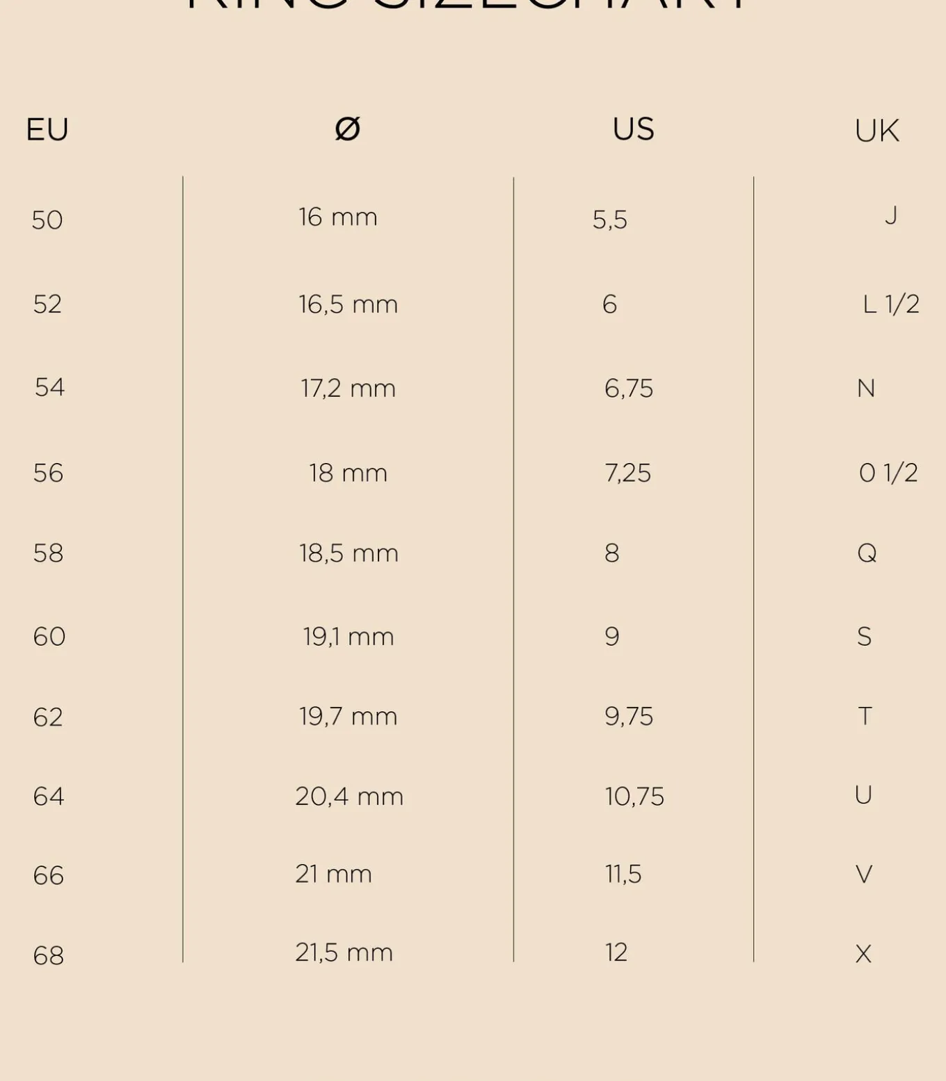 | Size | 56, 58, 60, 62, 64 |