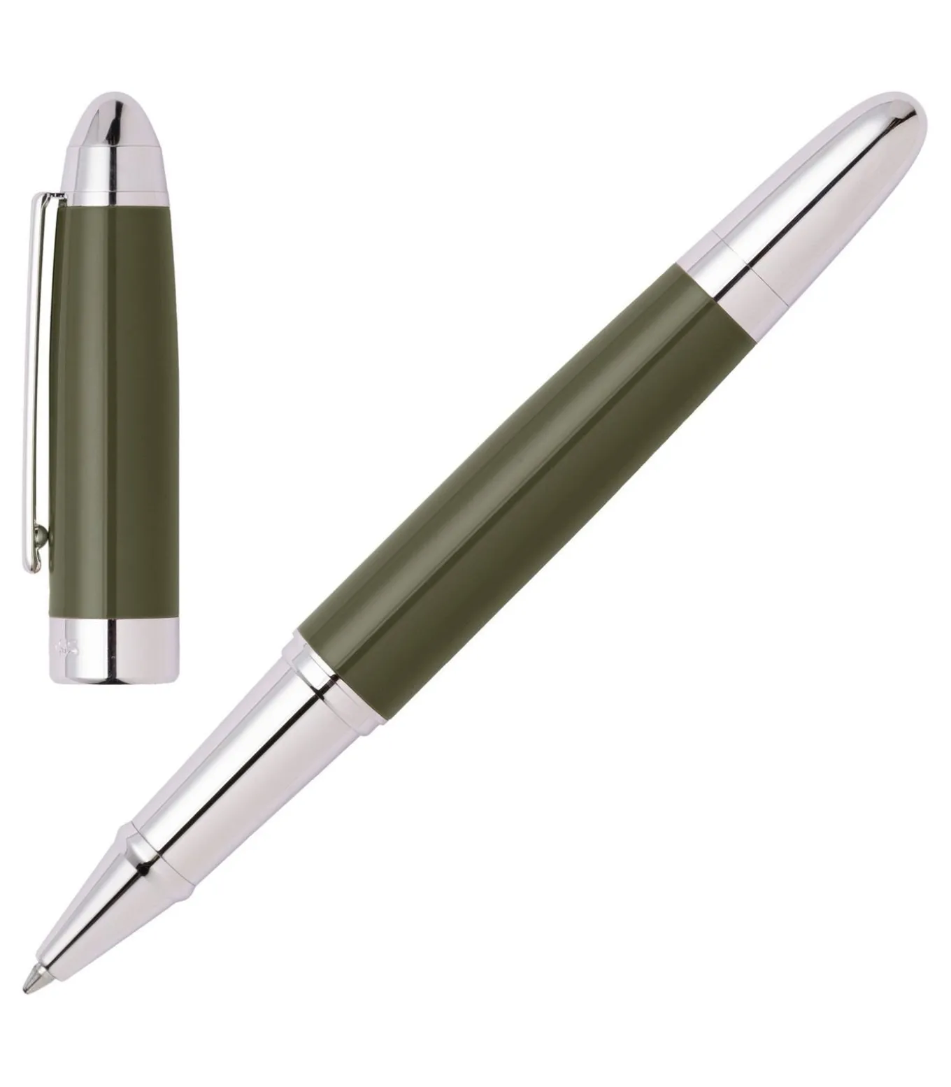 Elevate your writing experience with the Rollerball Pen Icon Kaki/Gun by HUGO BOSS. This sleek and stylish pen combines a luxurious dark green and black design with premium brass and gun plating for a sophisticated touch. Weighing just 46 grams and measuring 138 mm in height, it fits comfortably in hand, making every writing session a pleasure. Its smooth blue ink glides effortlessly on paper, ensuring your thoughts flow seamlessly. Perfect for both men and women, the Icon Kaki/Gun is not just a pen; it’s a statement of elegance. Experience the art of writing with HUGO BOSS. Dimensions: DIA.12/H.138 mm, Material: Brass,Lacquer,Gun plating,Black chrome