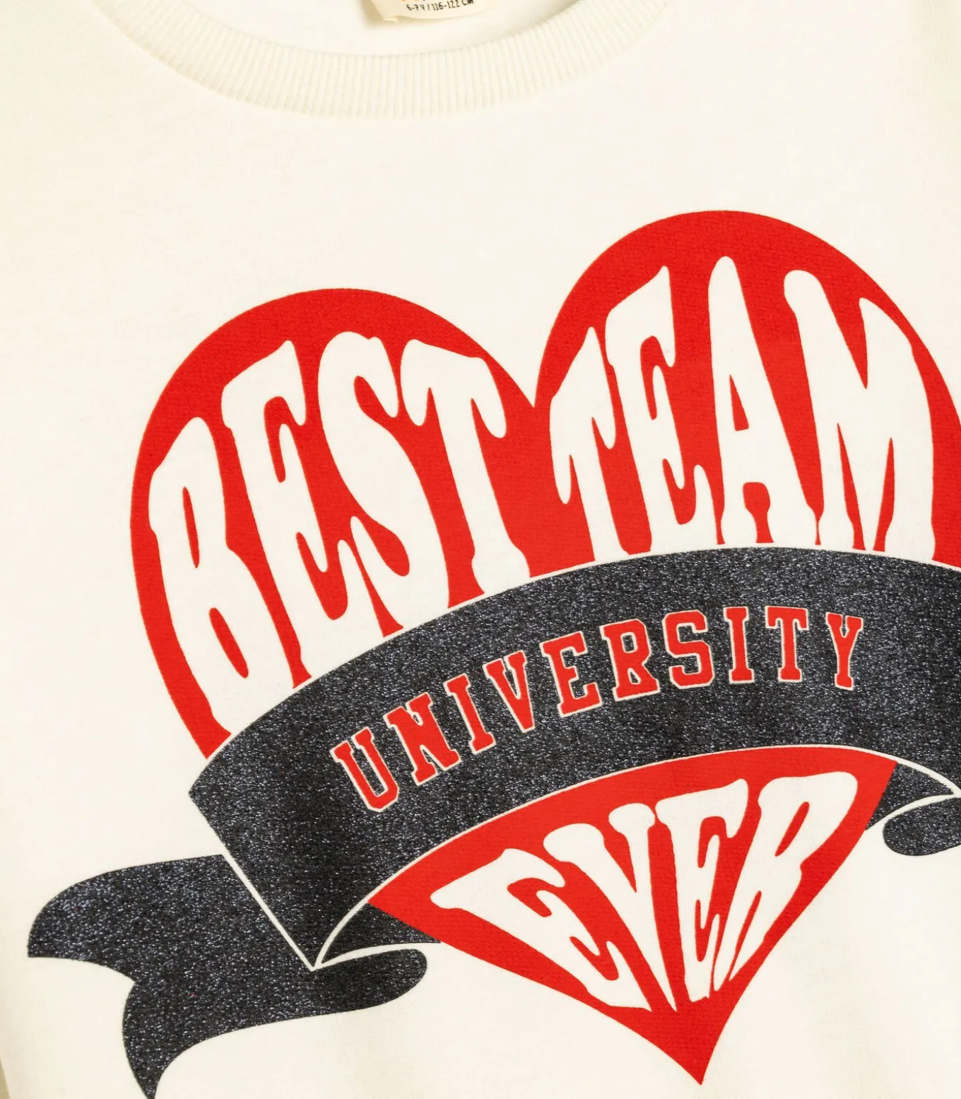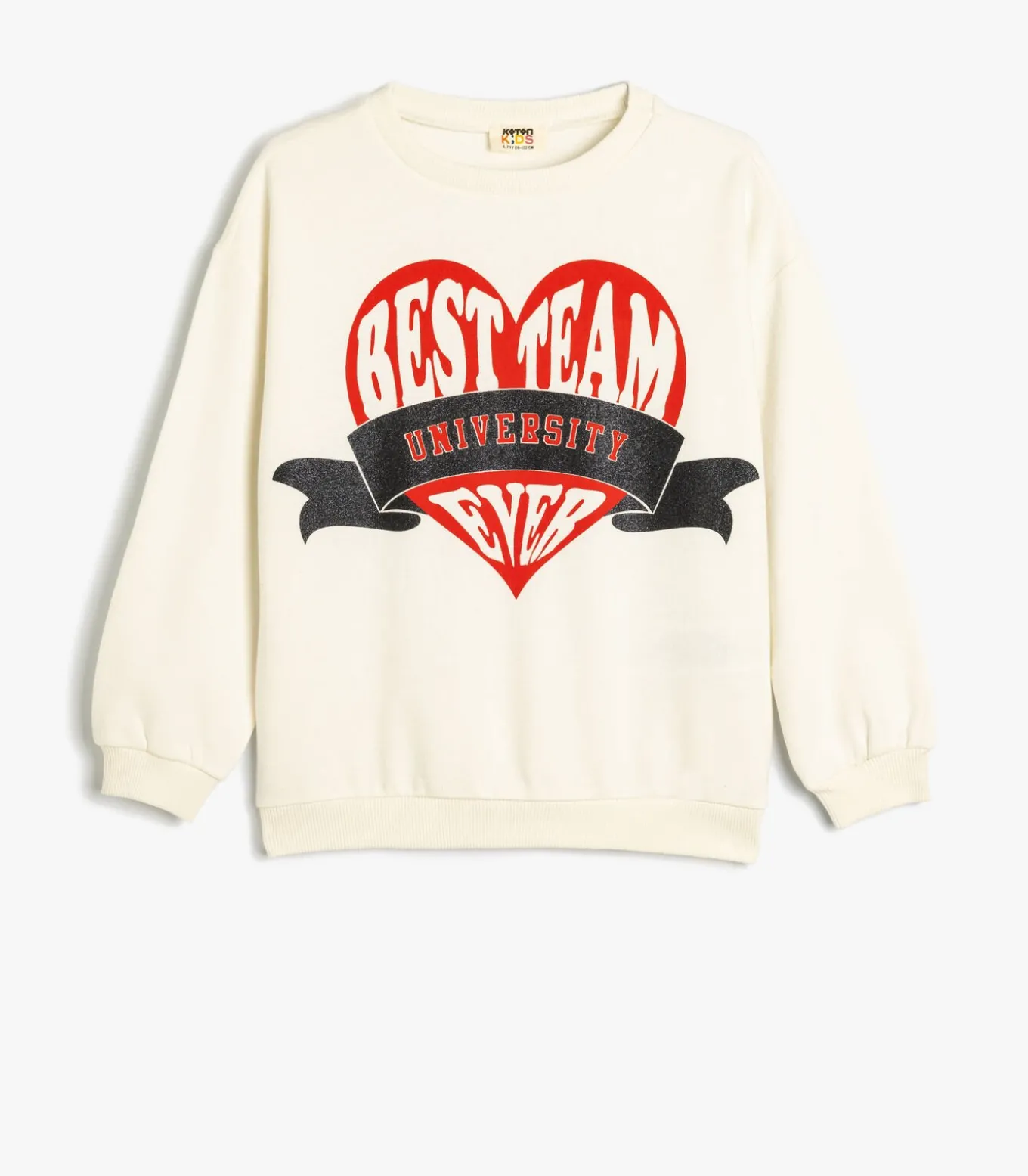 Bci–katoen Met drukwerk Glitter afdruk Hart/Liefde Normaal Boxy zonder zak Normale lengte Lange mouw Ronde kraag Sweatshirt