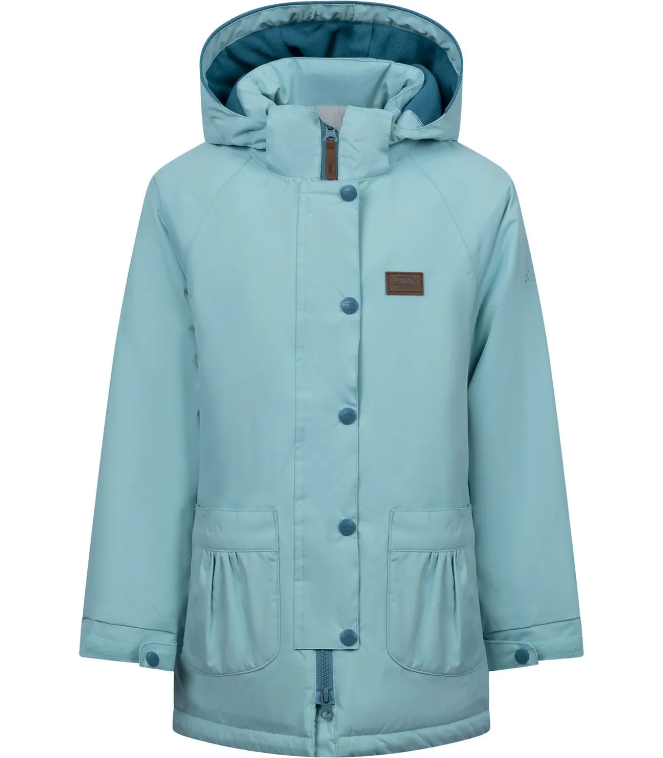 Trespass regenjas Roselettie – Blauw: Een vertrouwbare keuze voor een waterdichte, praktische en gezonde omhulsel voor kinderen van twee tot twaalf jaar. Deze regenjas is volledig gemaakt van polyester en heeft een PVC–omhulsel voor extra waterafstotend vermogen. De lichte, duurzame stoftechnologie zorgt ervoor dat je kind het hele jaar door droog blijft, zelfs in de meest regenachtige weersomstandigheden. De sierlijke, eenvoudige ontwerp maakt van deze regenjas een geweldige optie voor elke dag. De verstelbare mancheten met studs en de kapiteinshalslijn bieden comfort en stijl tegelijk. De kap is afneembaar zodat het kind gemakkelijker kan kleden en ontdooien. De regenjas heeft twee gestikte zakken, waarbij een klepsluiting zorgt voor extra veiligheid. De volle rits, drukknoop en stormflap verzekeren de waterdichtheid van de regenjas in hevige wind en natuurlijke neerslag. Het gedompelde zoom zorgt ervoor dat je kinds handen droog blijven. De maatvoering van de regenjas is 21 inch voor kinderen van twee tot drie jaar, 22 inch voor kinderen van drie tot vier jaar, 26 inch voor kinderen van zeven tot acht jaar en 31 inch voor kinderen van elf tot twaalf jaar. Met deze verschillende maatvoeringen is het mogelijk om de juiste regenjas te vinden voor elk kind.